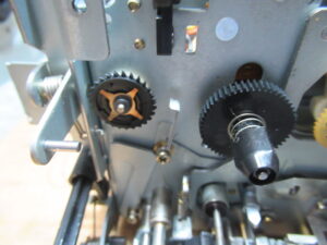 加水分解で溶け切れたゴムベルトが左側のリールに付着していますので、綺麗に清掃します。併せてグリスアップも行います。