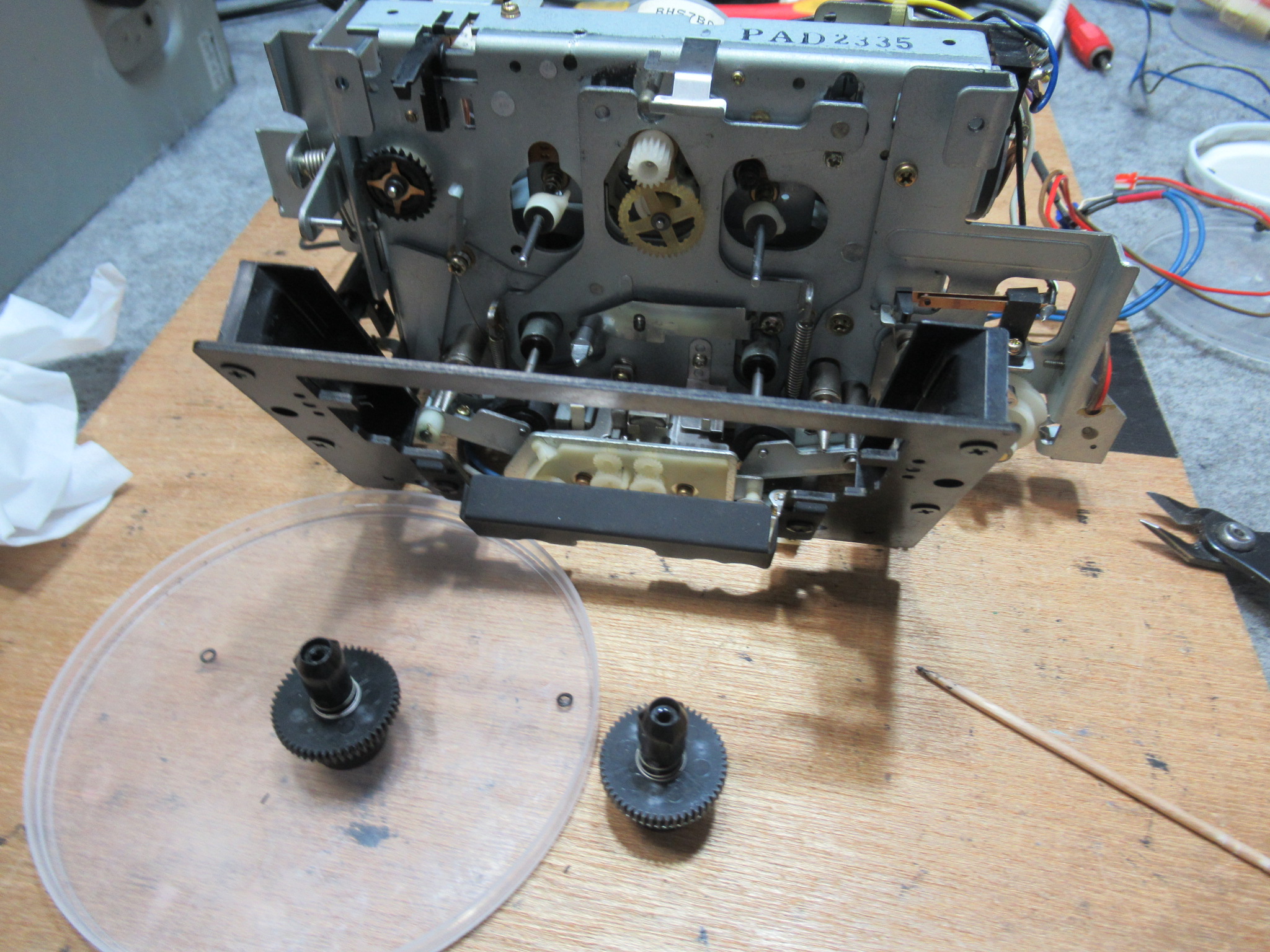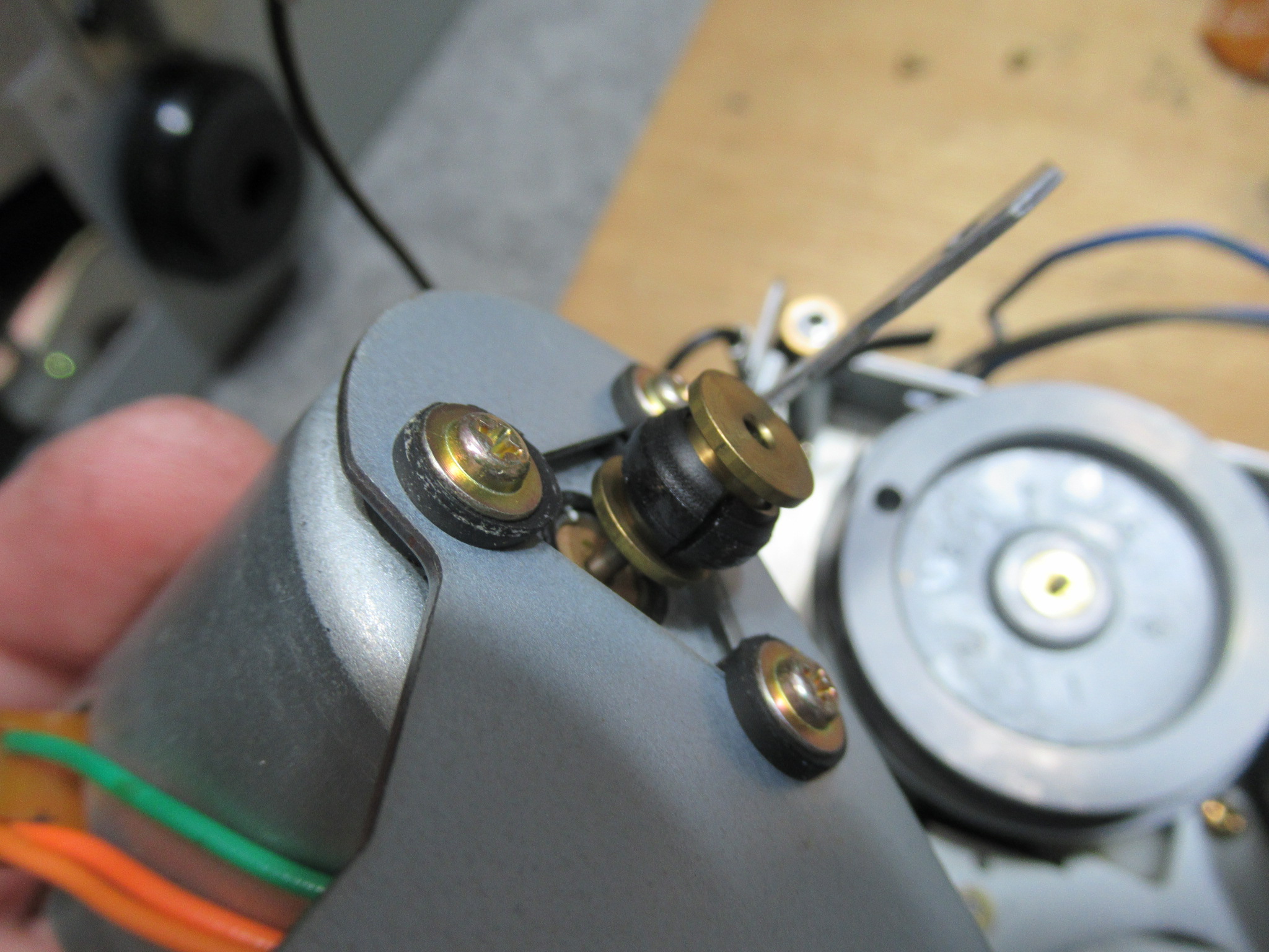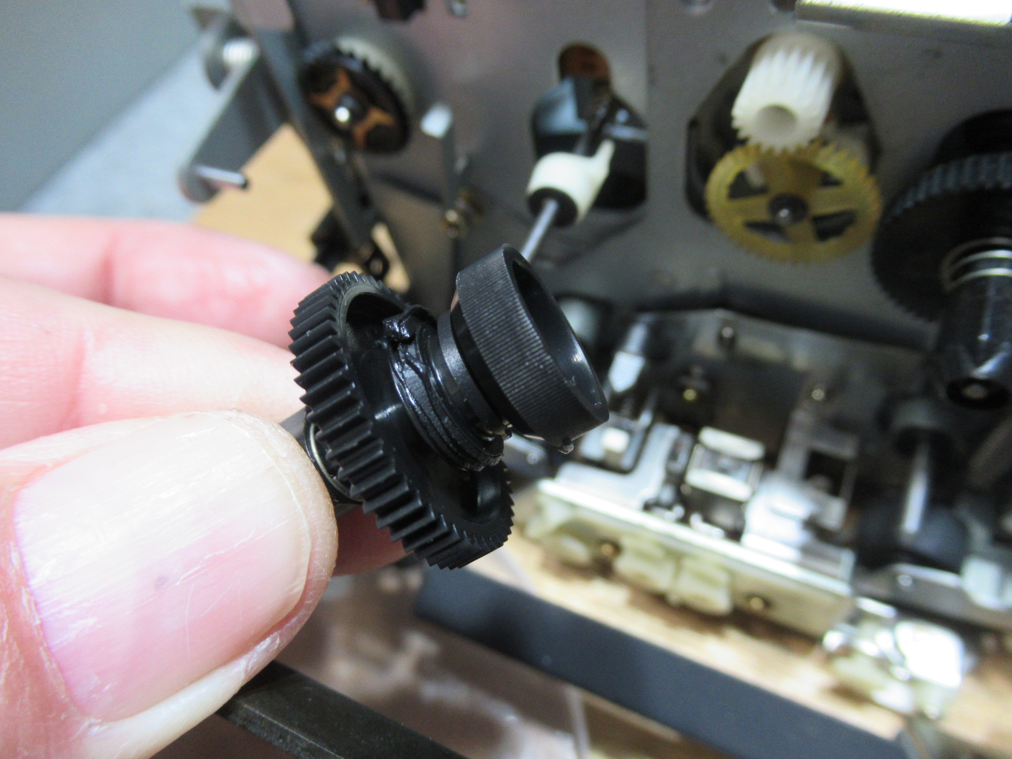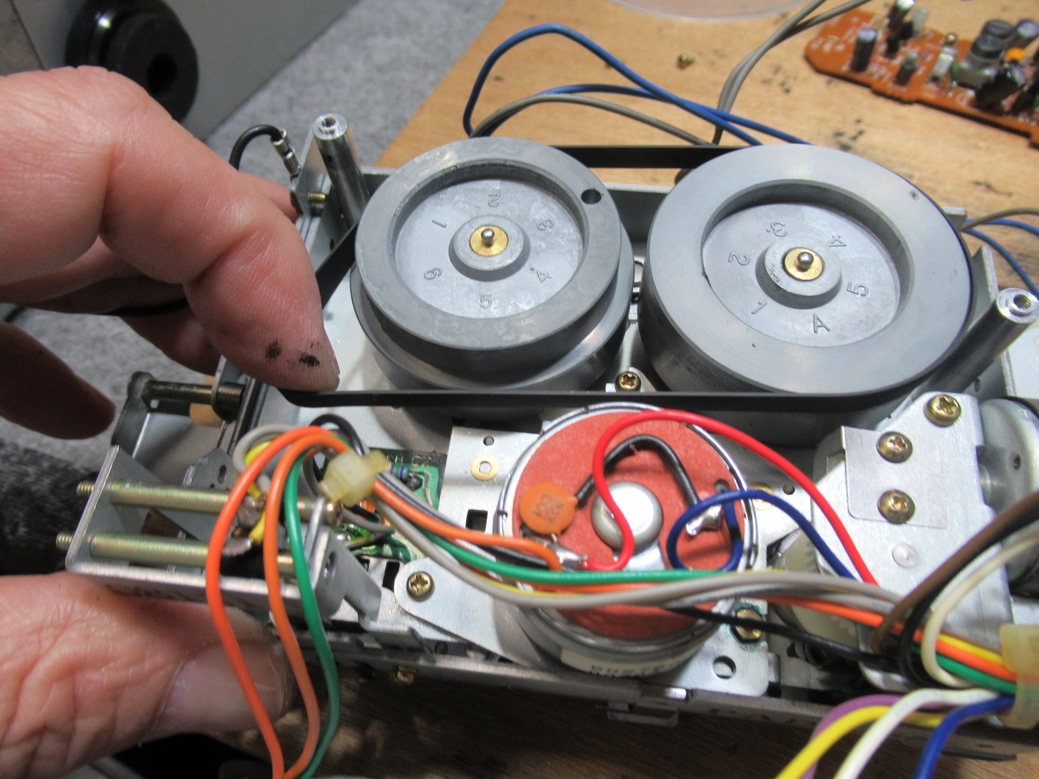 新しいベルトを取り付けます。これが無いと、テープ走行が不安定になり、テープを痛めることがあります。