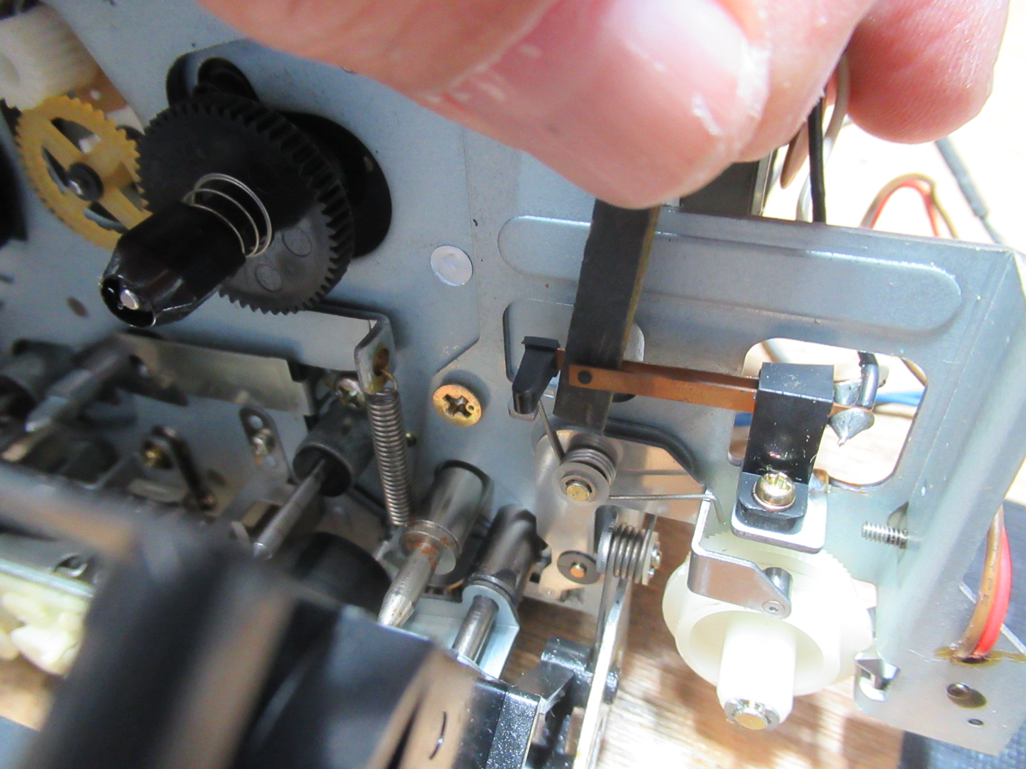 メカの動きを検知するスイッチ接点を磨きます。