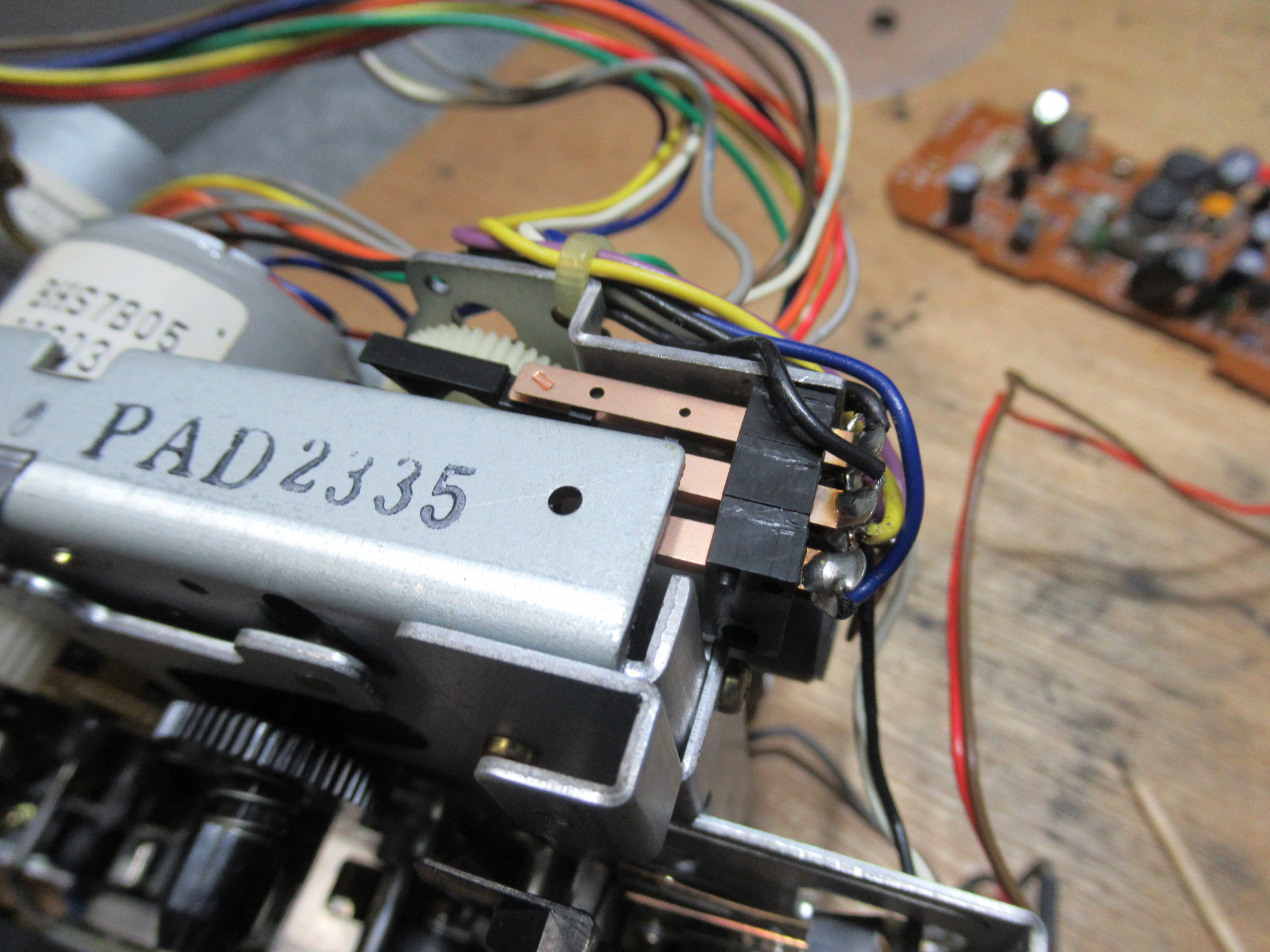 トレイ開閉を検知するスイッチ接点を磨きます。