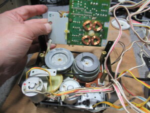操作を繰り返していると、停止ボタンを押すとリールの回転のみ停止することがあります。そのためピンチローラーでテープが送られ続け、テープが巻き込むことがわかりました。
