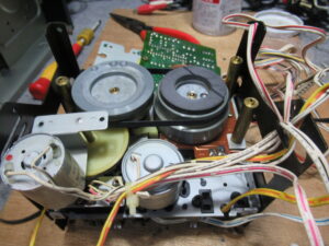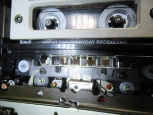 録音状況を確認して修理完了というところですが、最後に思わぬトラブルが発生しました。少しの間、他の作業をしながら再生を続けていましたが、突然音が止まりました。テープが終了したのだと思い、機器を見てみると、