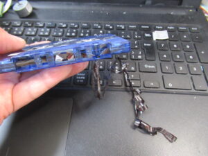 少し驚きましたが、アイドラーゴムを交換したところ、元々のものは、小さなものと一回り大きなものを2ケ重ねてありました。おそらく丁度良いサイズのものが入手できないための苦肉の策でしょうが、少し乱暴です。