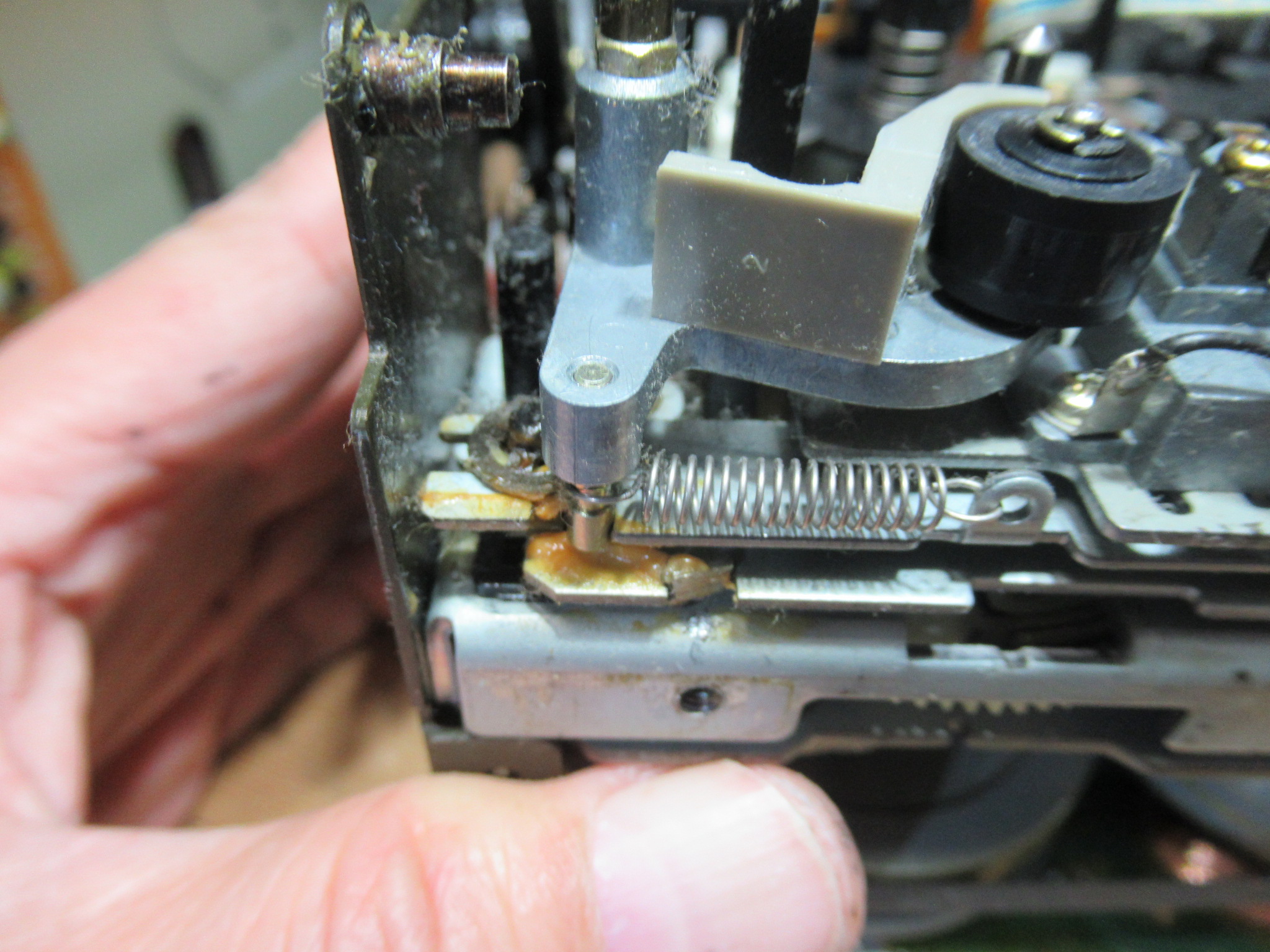 カセットホルダーを分解します。内蔵されているスプリングにヘタリが見られます。