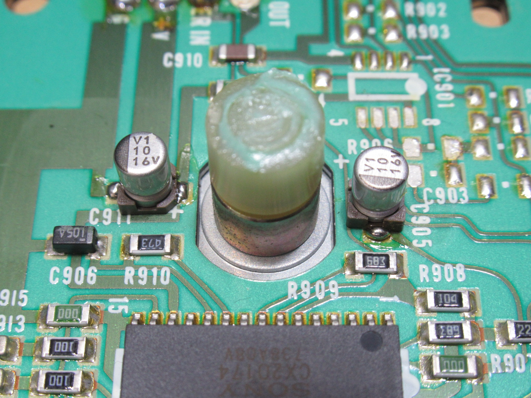 約20年前に交換されたという電解コンデンサーを交換します。