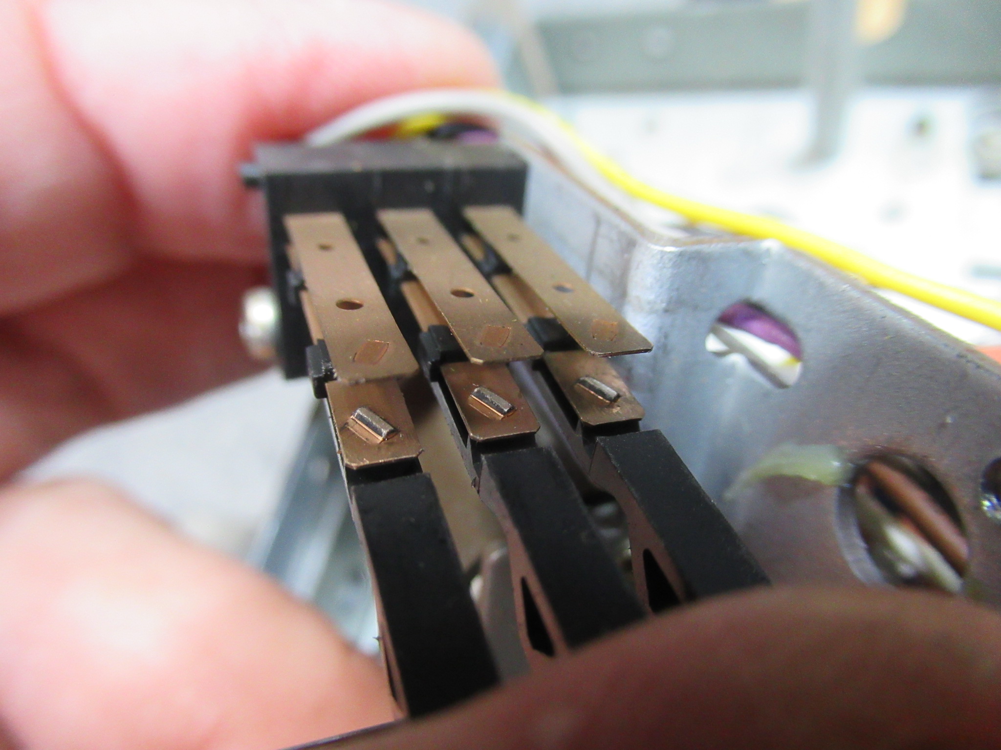 メカの動作を検知するスイッチ接点を磨きます。
