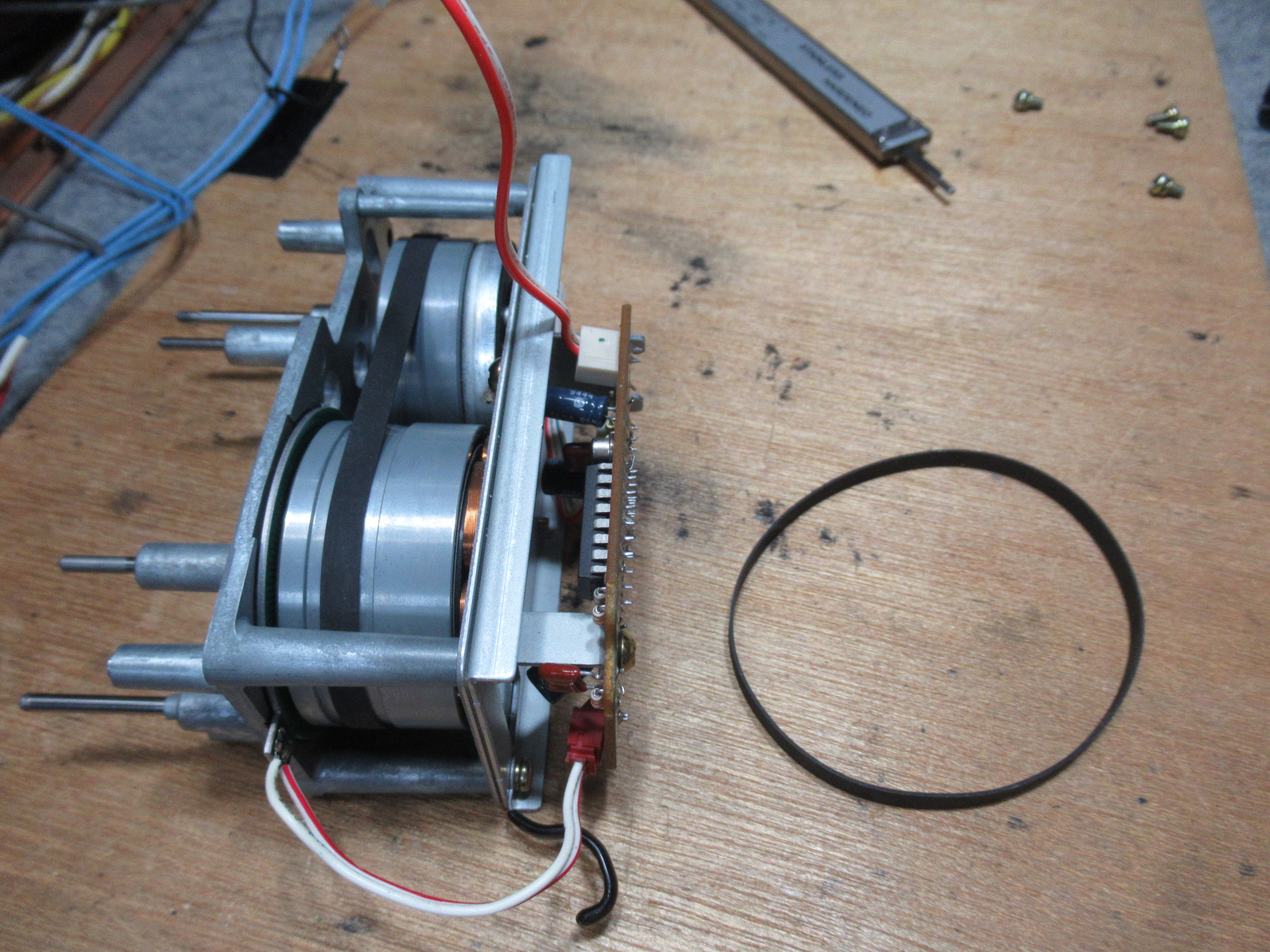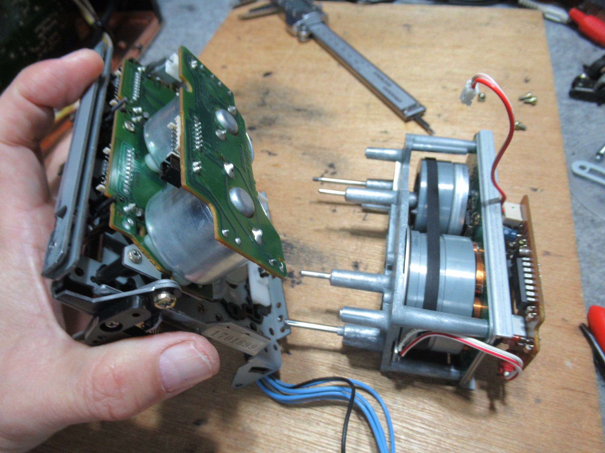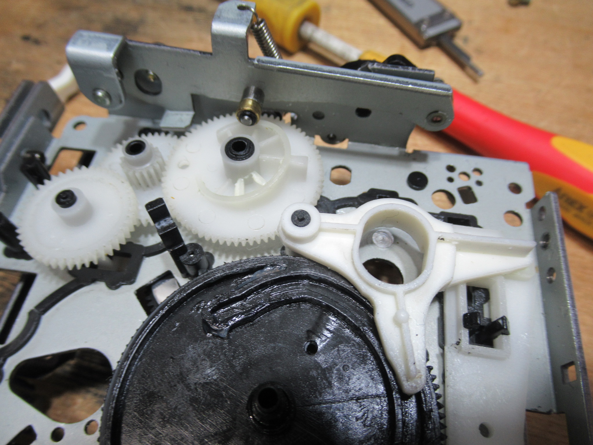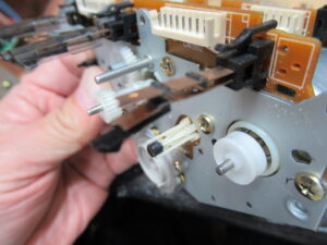 分解を進めます。左側のピンチローラーは調整式になっていますが、この位置ではクロストークが発生します。