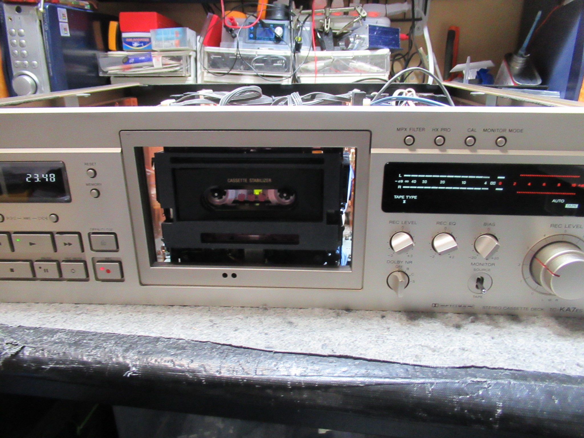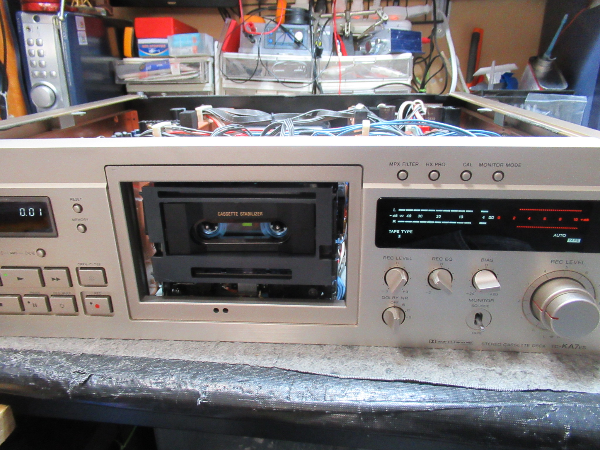 SONY製3ヘッドデュアルキャプスタンカセットデッキ、TC-KA7ESです。 最近入手されたということですが、メタルポジションでのバイアスキャリブレーション、及び調整後の音質に難があるということです。 …