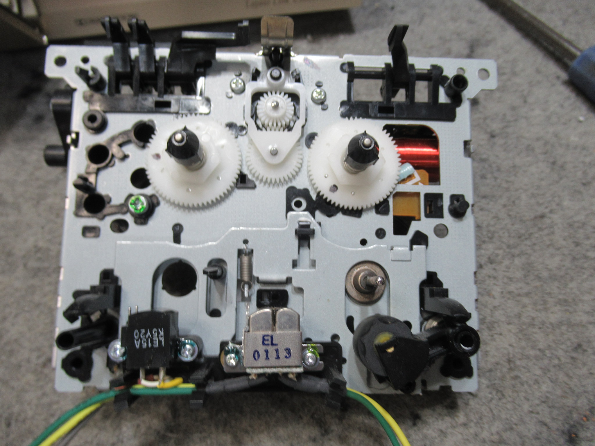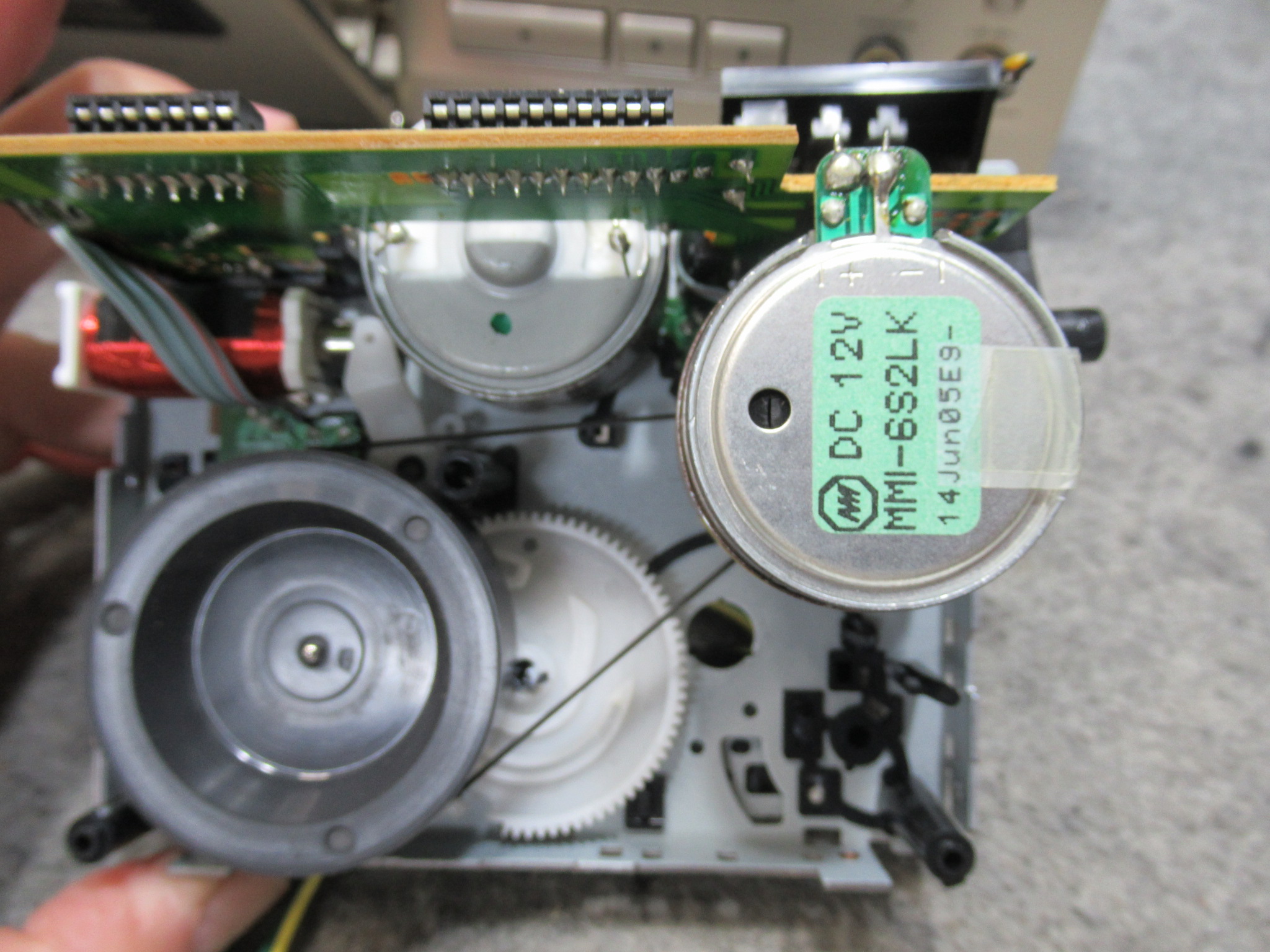 メカを降ろします。右端がキャプスタンモーターです。この形式のモーターは故障しやすいといった印象があります。