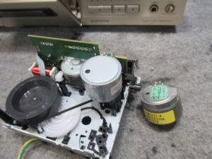 異音が発生するということです。動作確認を行うと、速度がかなり遅くなっていることがわかりました。半日ほど再生を続けていると、「キーーーー」という嫌な音が鳴りだしました。キャプスタンモーターが原因と考えられます。
