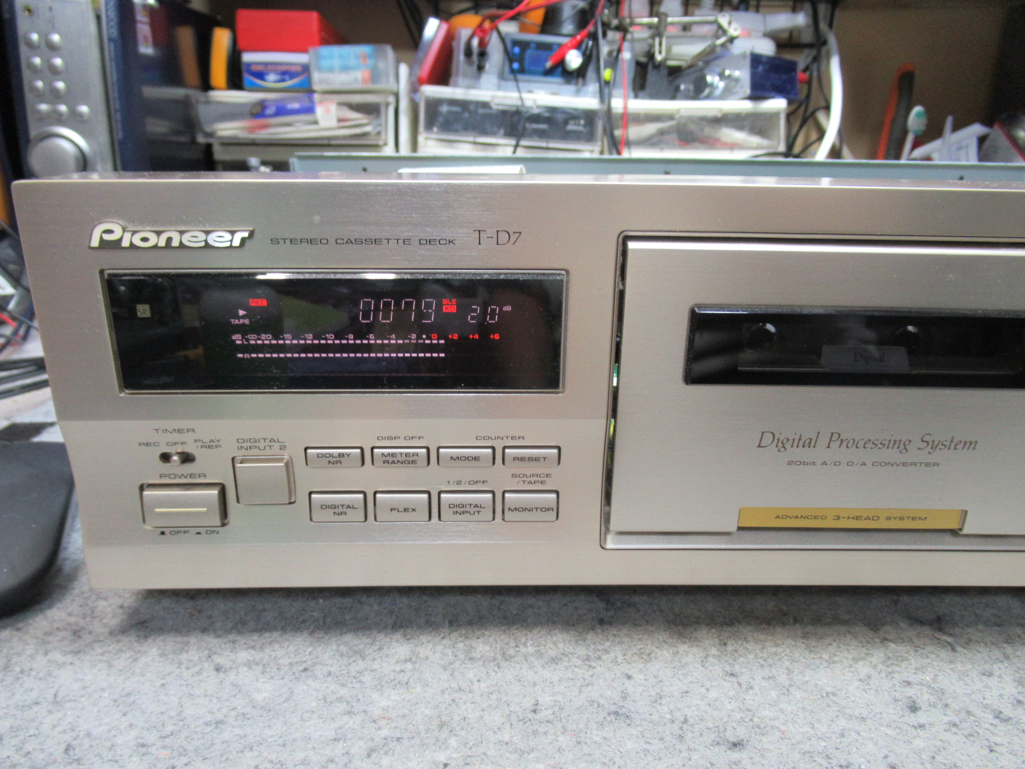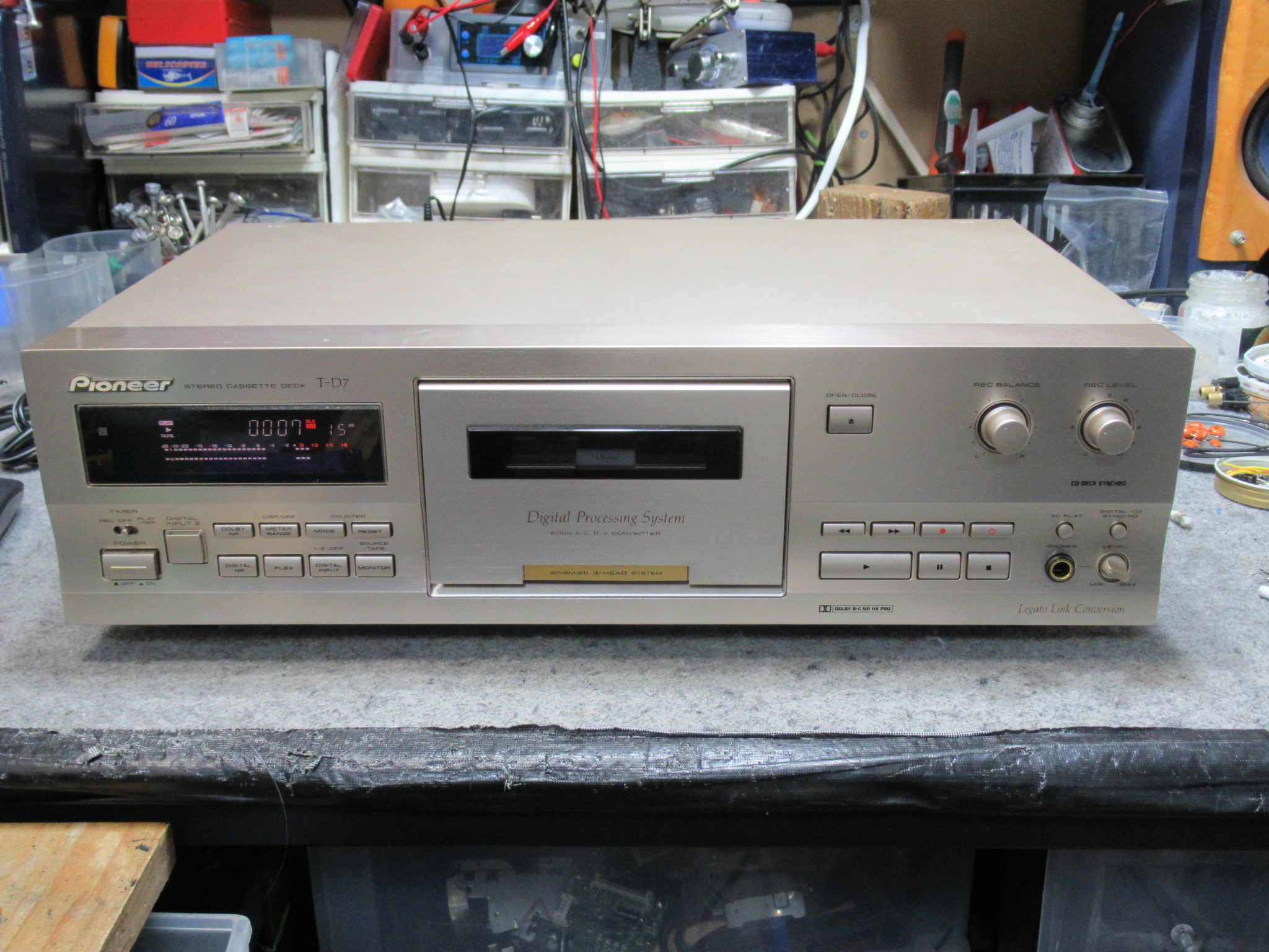 PIONEER製3ヘッドシングルキャプスタンカセットデッキ、T-D7です。 テープを入れ替えたとたん、再生できなくなったということです。 テープをセットして再生を開始しましたが、すぐに停止してしまいま …