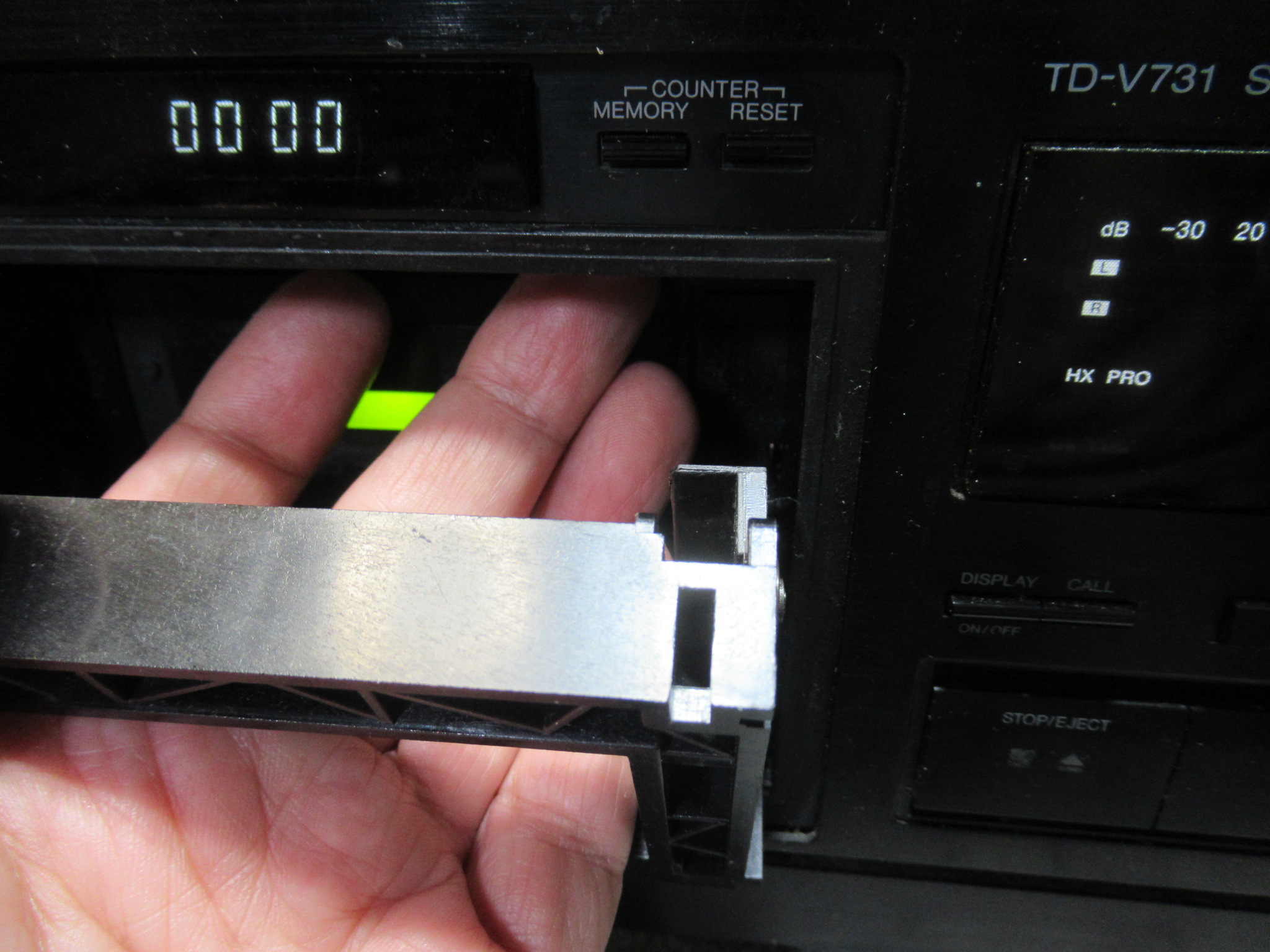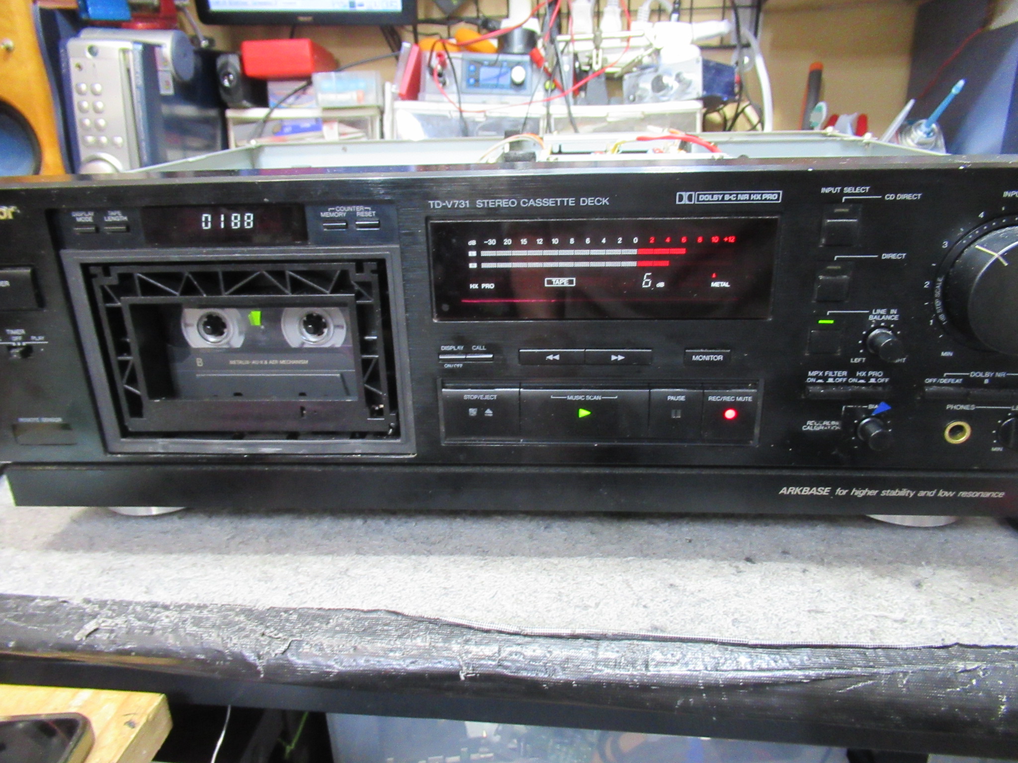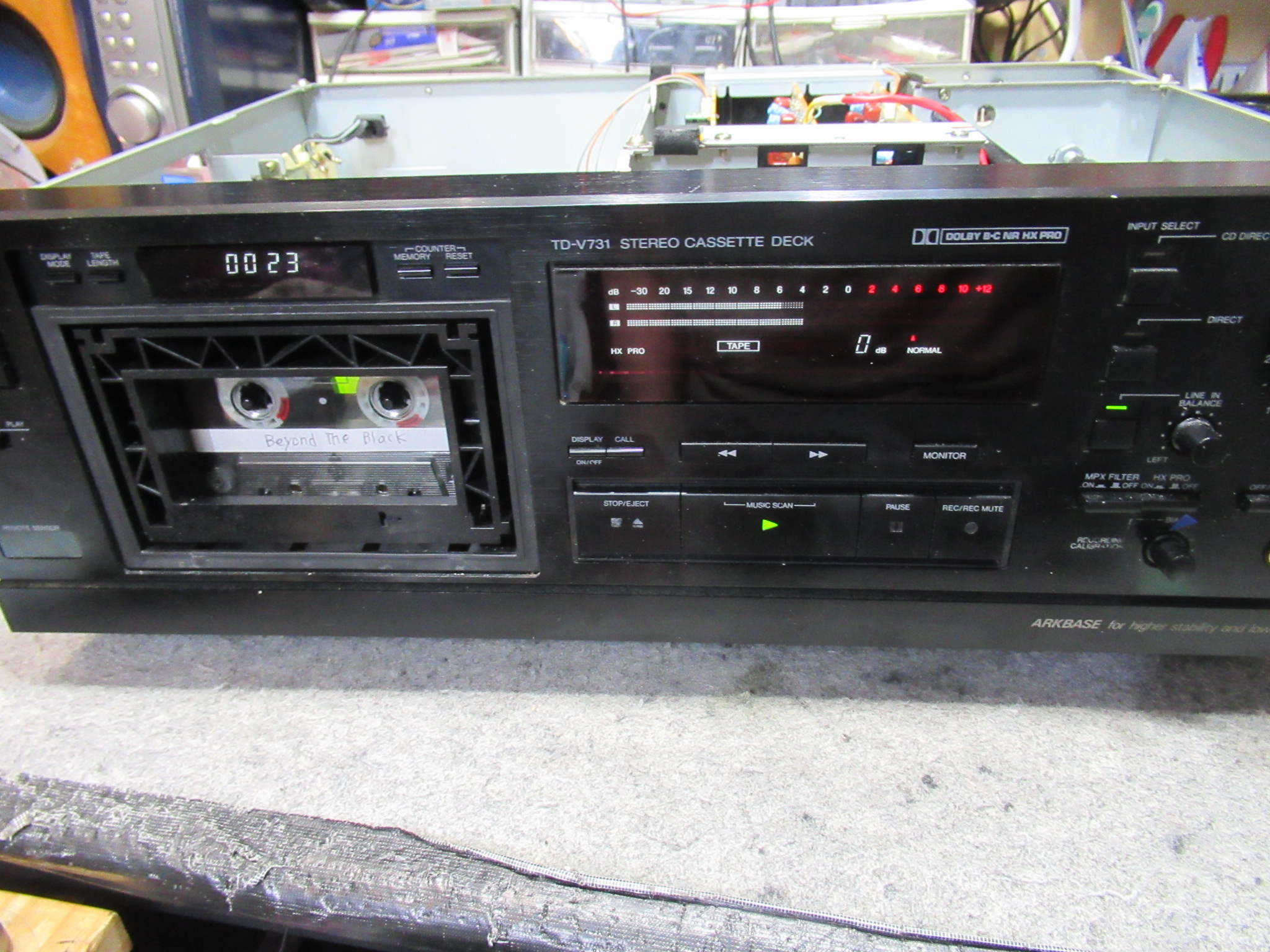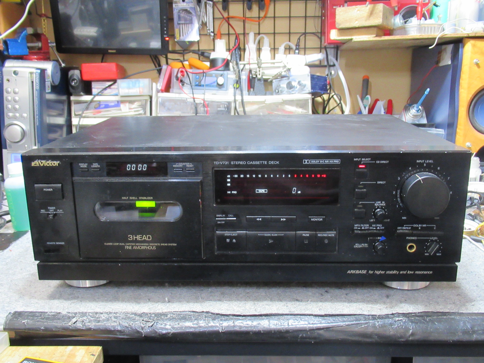 Victor製3ヘッドデュアルキャプスタンカセットデッキ、TD-V731です。ノイズが載る、セレクターの誤作動などの不具合を抱えているようです。