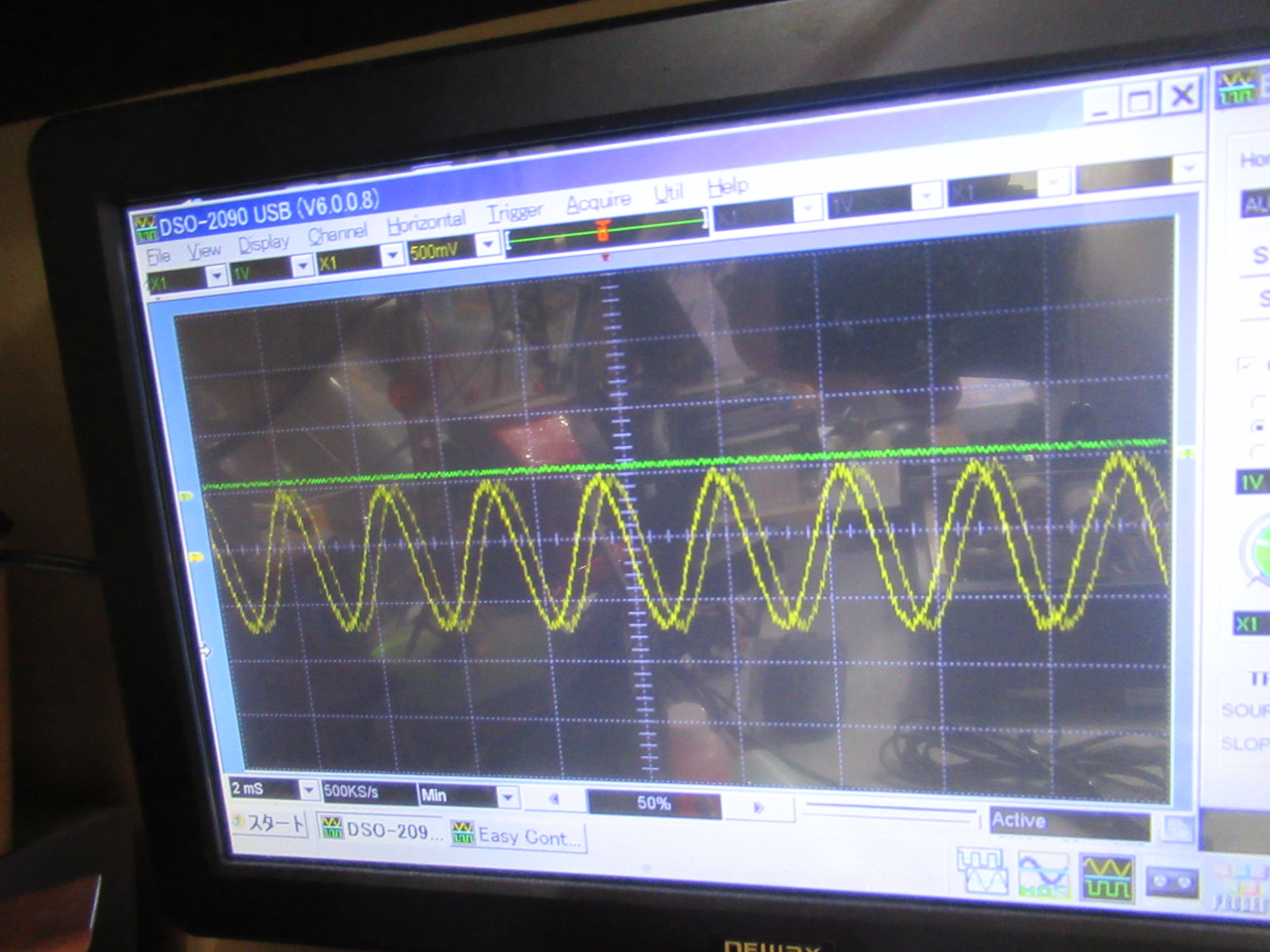 パソコンで出力したサイン波をINPUTに接続します。