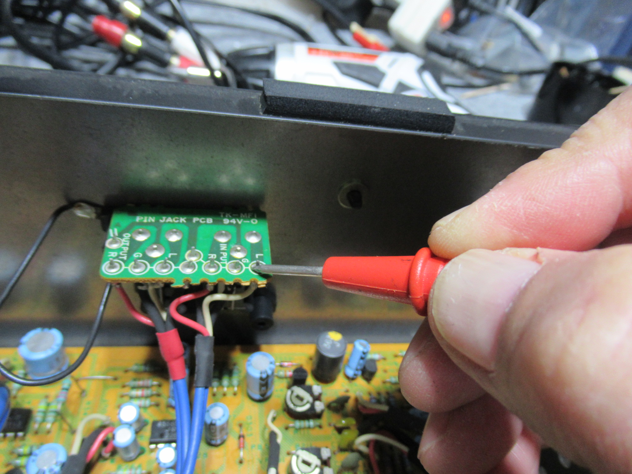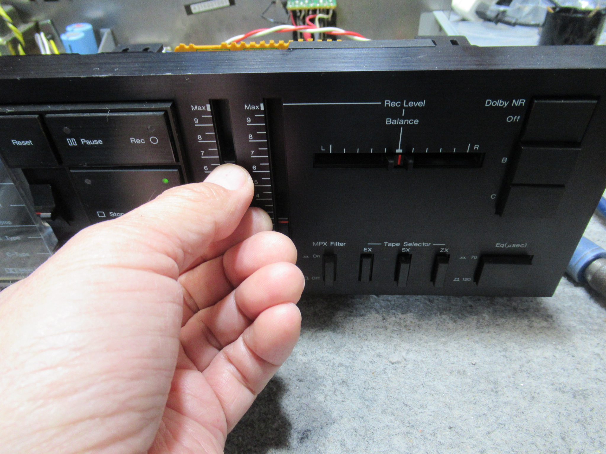 原因は、RECLEVEL調整用の半固定抵抗の接触不良でしたので、接点復活剤を処置します。