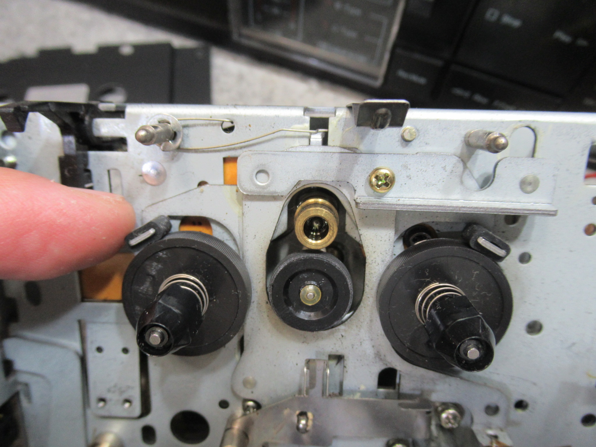 その後、動作テストを続けていると、リールにブレーキが掛かる際に「キュッ」と一瞬嫌な音がなることがわかりました。硬化してスリップしているブレーキゴムを交換します。