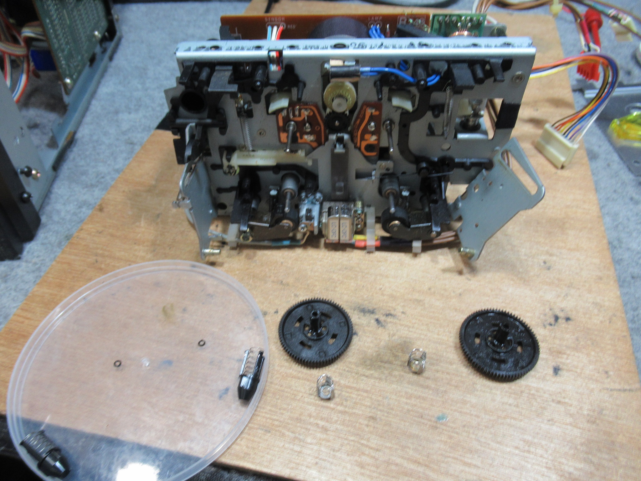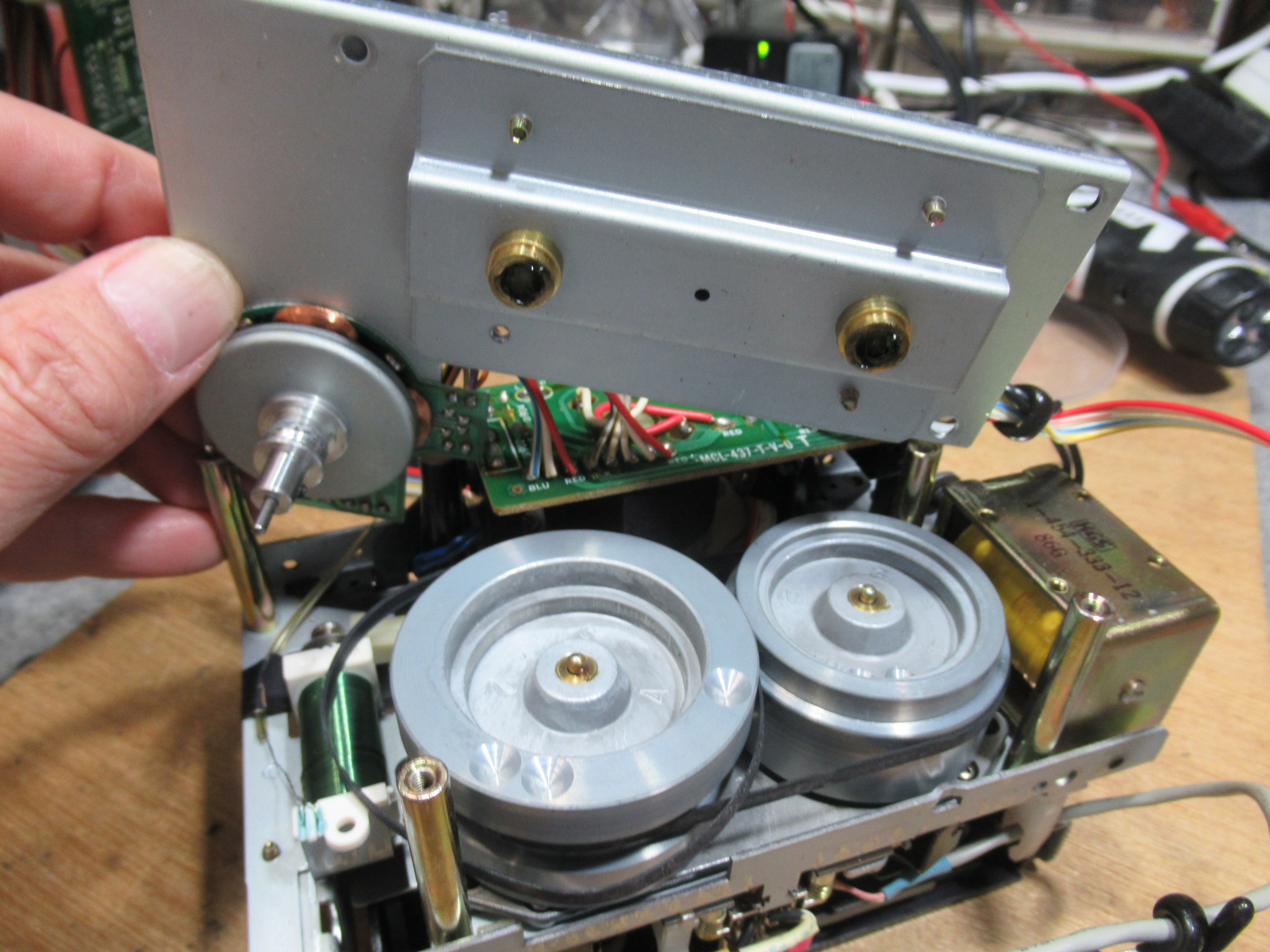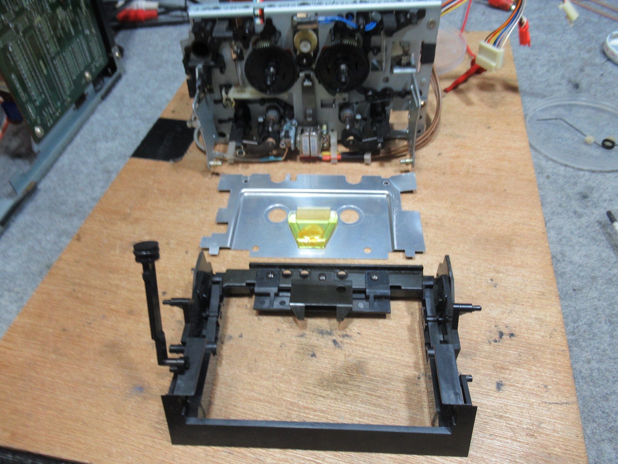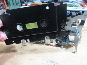 ホルダーと化粧パネルを取り外しました。問題となるプリズムは綺麗に清掃されていましたので、テープ走行の問題は、化粧パネルの取り付け不良が原因だったようです。