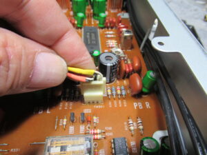 再生ヘッドのコネクタを逆挿ししたところ、不具合が左右入れ替わりましたので、ヘッドの故障確定です。ヘッド交換は可能ですが、ドナー機の入手及び工賃を加えると、当初見積もりを相当オーバーする旨オーナー様にお知らせし、今回はここで修理中止となりました。