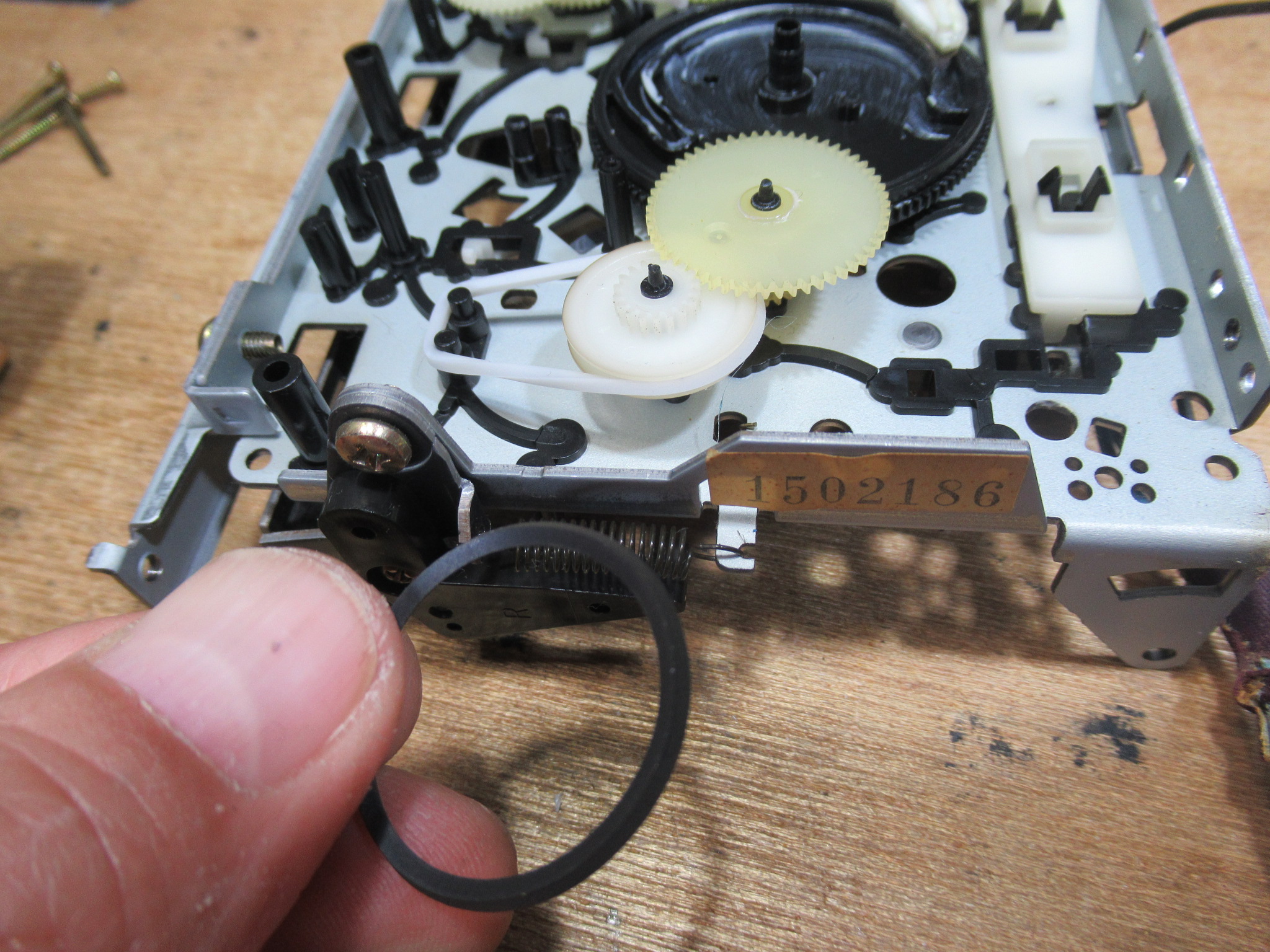ベルトに亀裂が入っています。今回はシリコンゴム製のベルトを取り付けます。