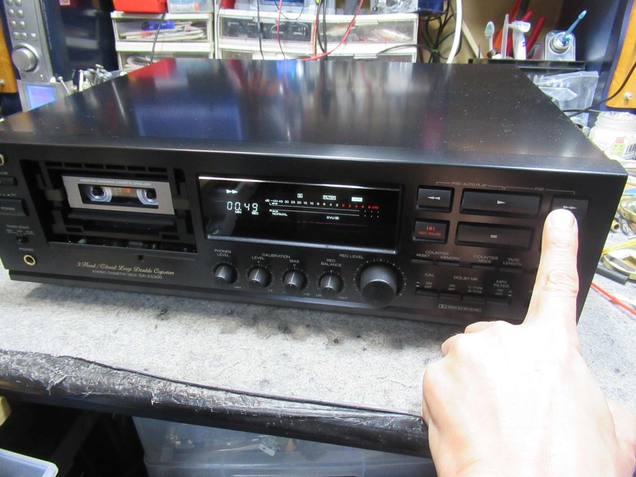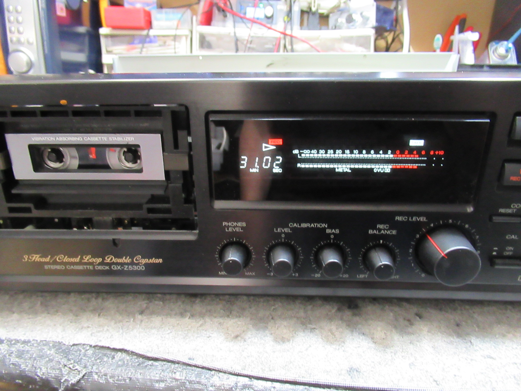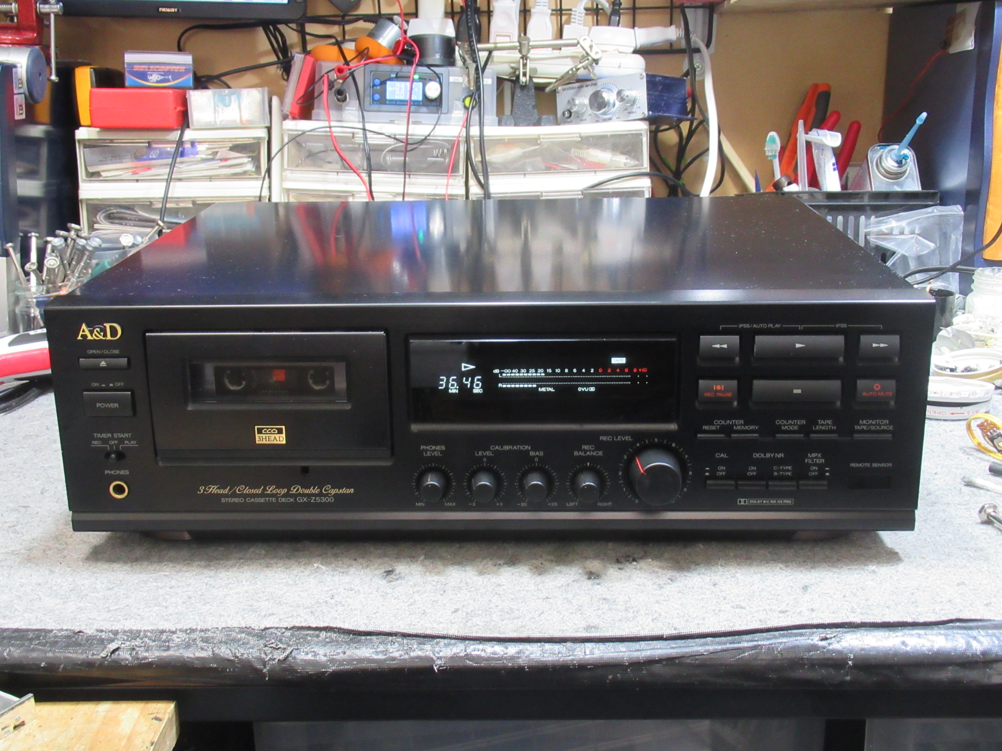 A&Dの3ヘッドデュアルキャプスタンカセットデッキ、GX-Z5300の修理依頼をいただきました。 数年ぶりに動かしたところ故障していたということです。 テープをセットします。再生を開始するとメ …