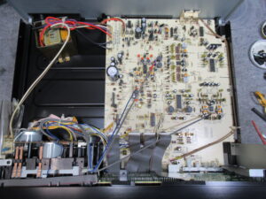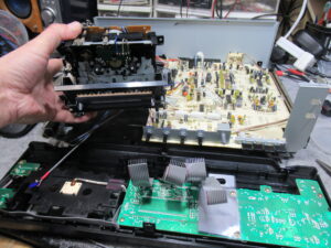 A&Dの3ヘッドデュアルキャプスタンカセットデッキ、GX-Z5300です。 しばらく使用しない間に故障したようです。 再生不可です。 カバーとフロントパネルを取り外し、 メカを取り出します。 …