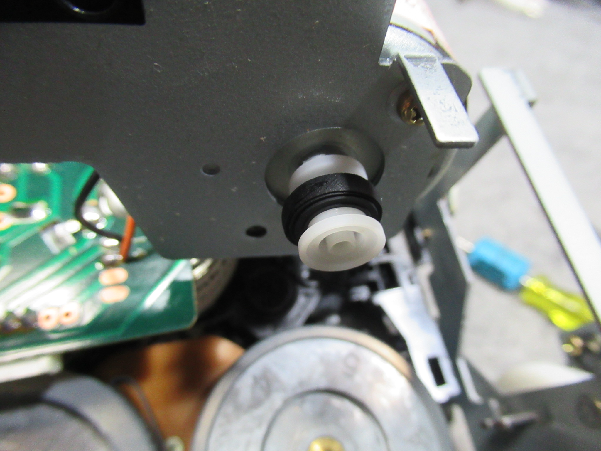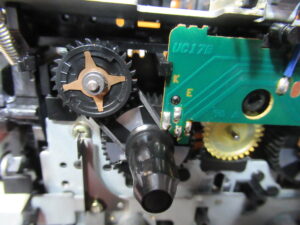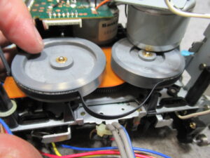 テープ走行を安定させるためのバックテンションベルトが無くなっています。このままではテープを痛めますので、新しいベルトを取り付けます。