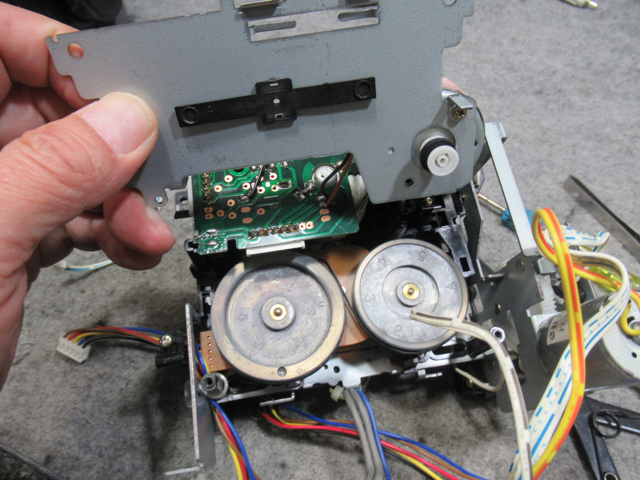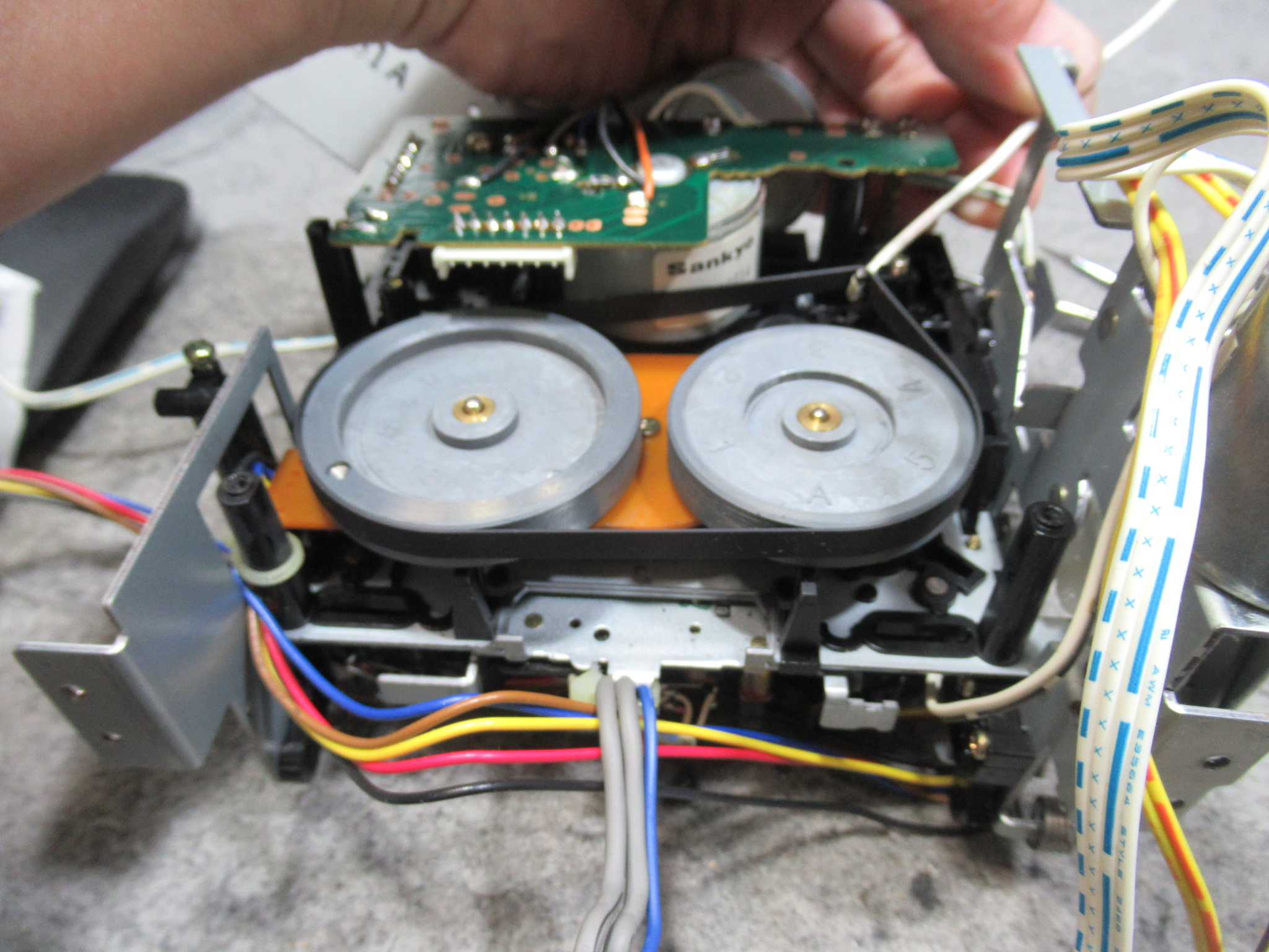 カバーとフロントパネルを取り外し、メカを取り出します。