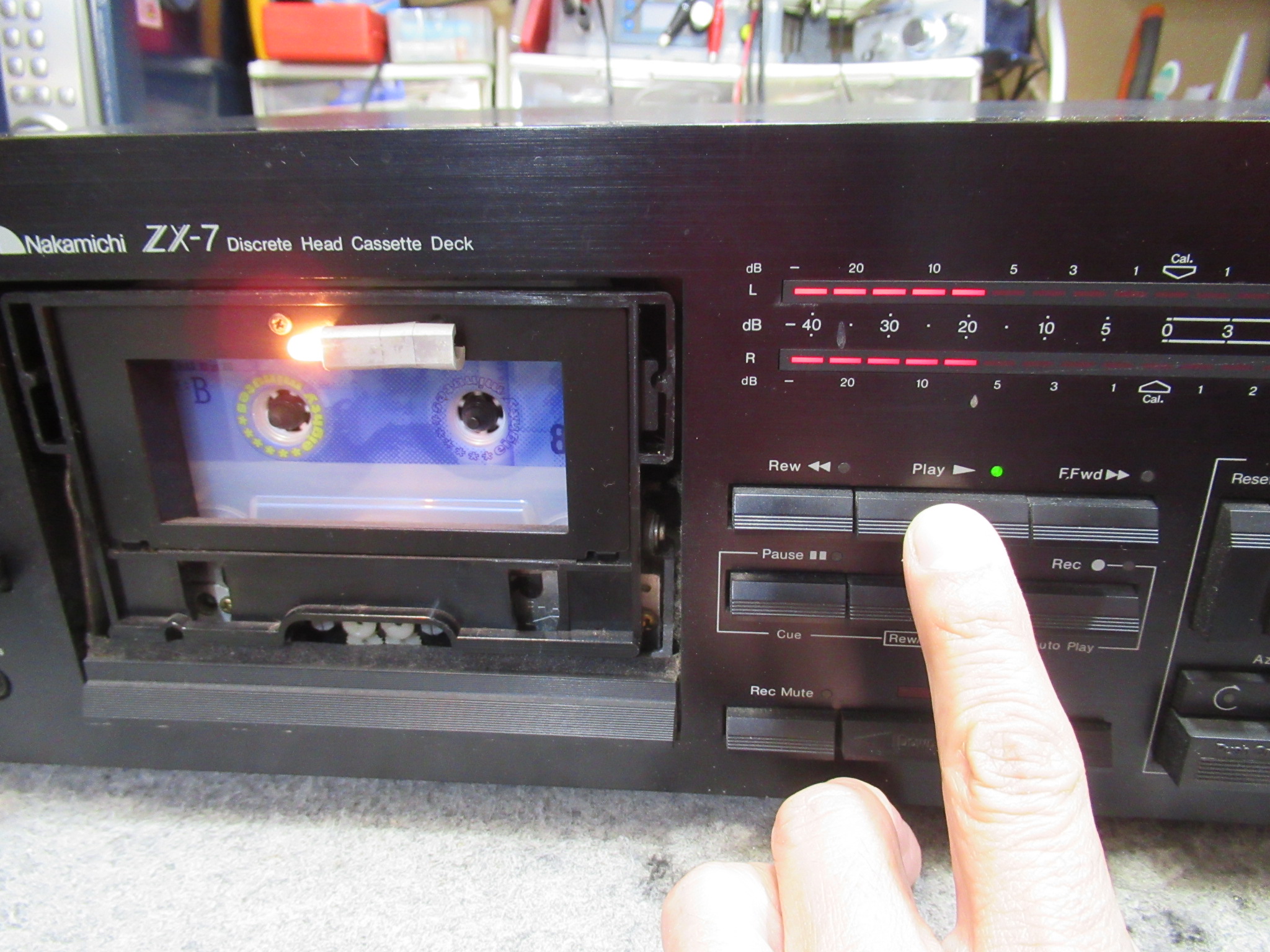 ナカミチのZX-7です。 10年ぶりに使用したところ、故障していたということです。電源ON後、動作開始するまで1時間掛かり、せっかく動いたと思ったら早送り再生になるということです。 再生ボタンに反応は …