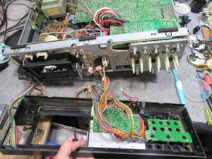 カバーを開けてフロントパネルを取り外します。非常に多機能な機種ですので、コネクタの数がかなりのものです。