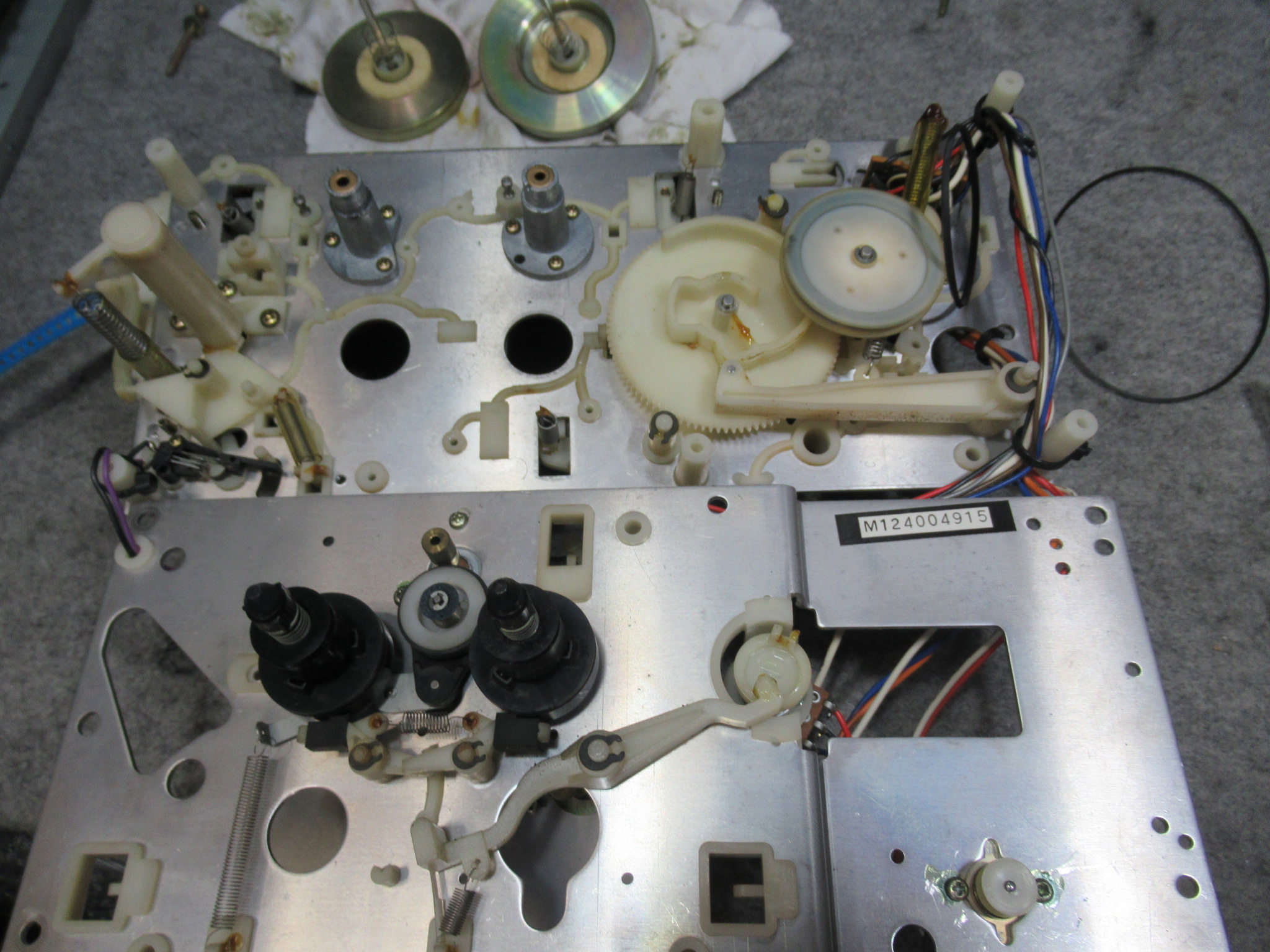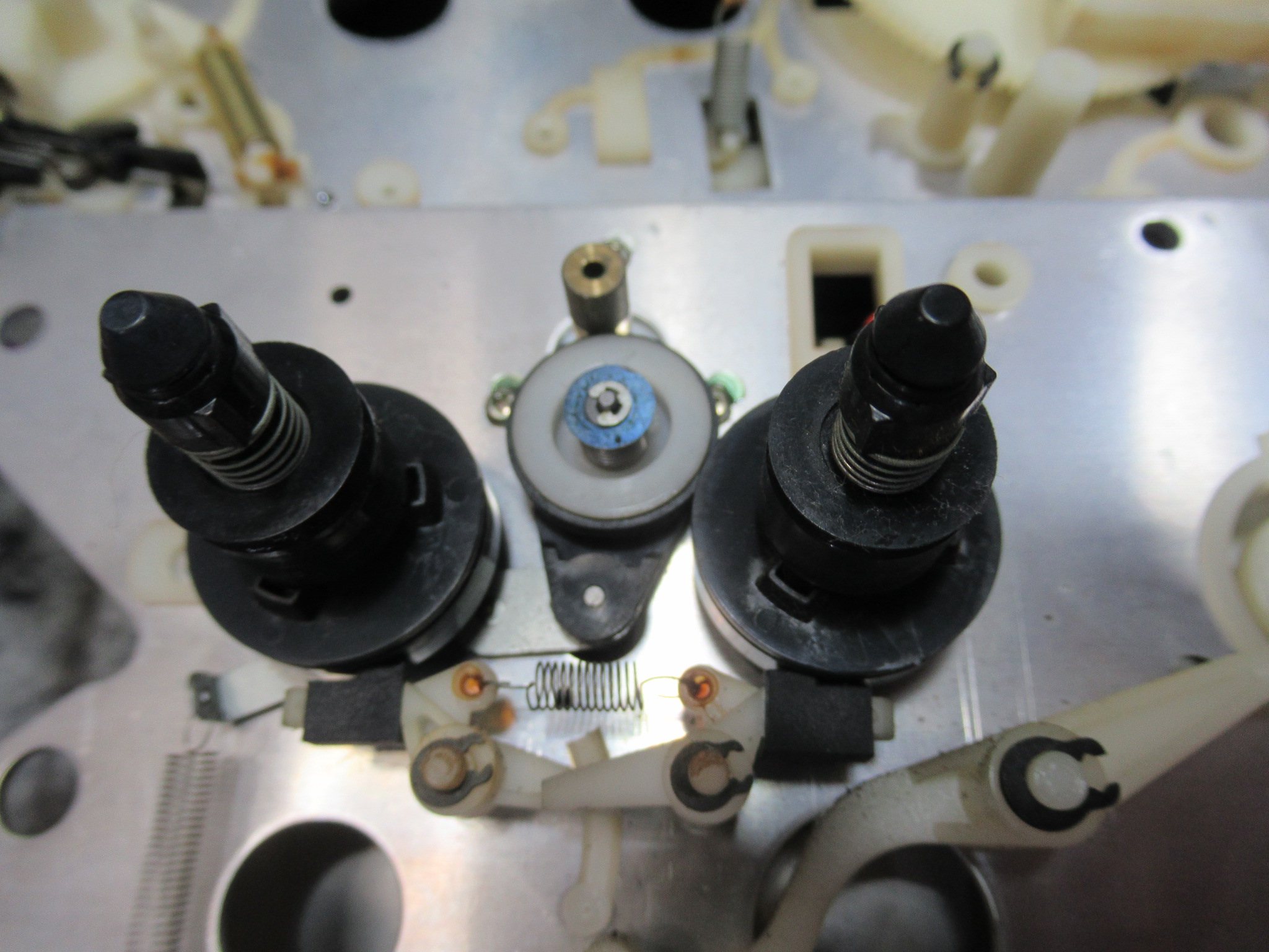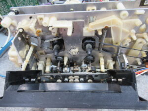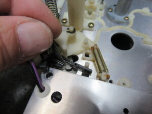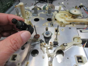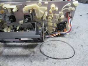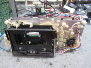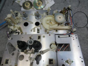 ナカミチのZX-7の修理依頼をいただきました。 動作不可状態です。 操作ボタンを押すとモーター音が鳴りますが、動きません。 ピンチローラーアームが固着しています。この修理は非常に厄介です。 トレイを開 …