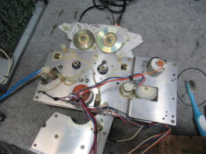 ナカミチのZX-7の修理依頼をいただきました。 最近入手したものの、動作不良ということです。 再生ボタンを押すと、リールは回転しますが、ヘッドとピンチローラーが上がりません。 カバーと底板を取り外し、 …