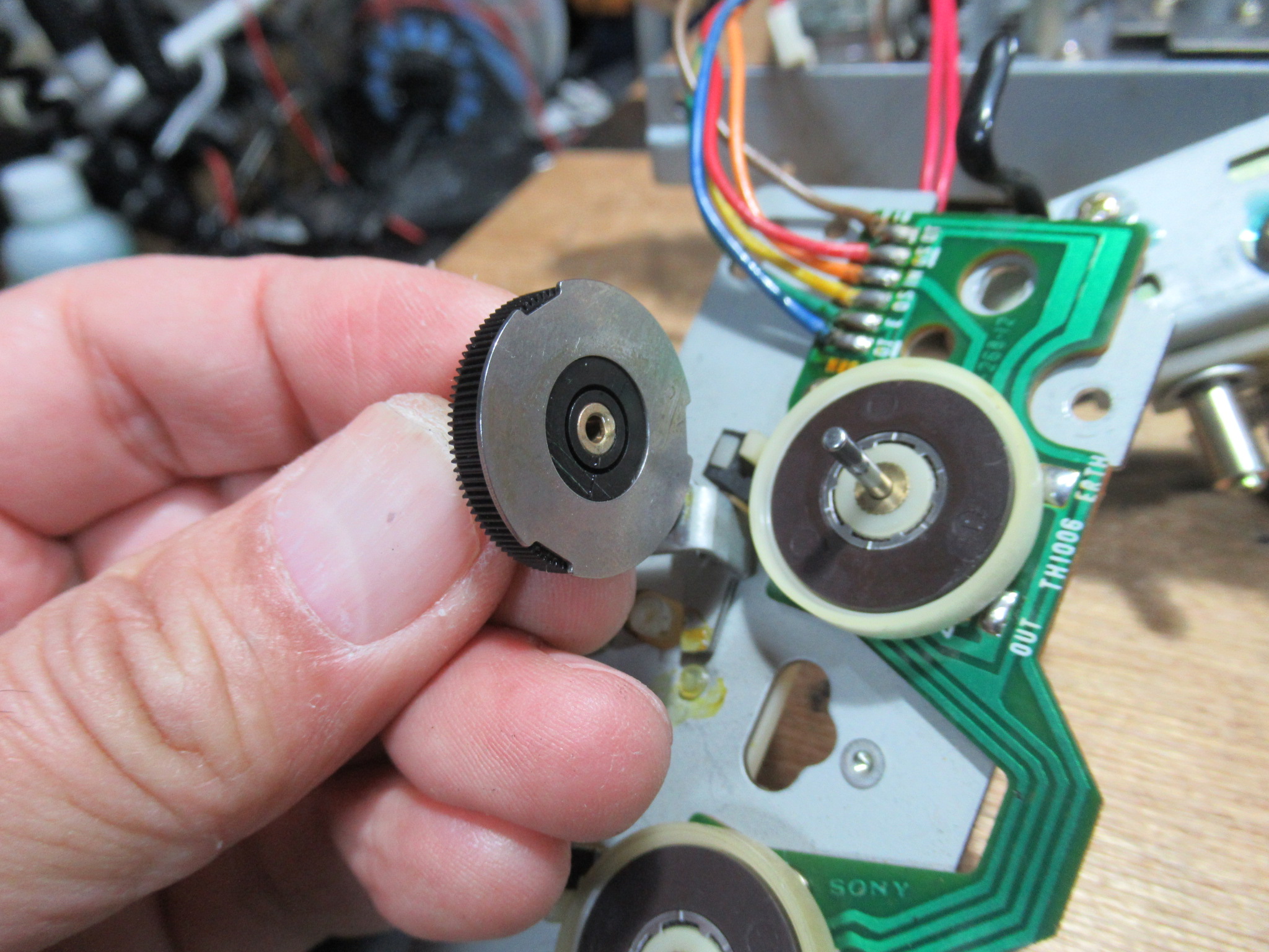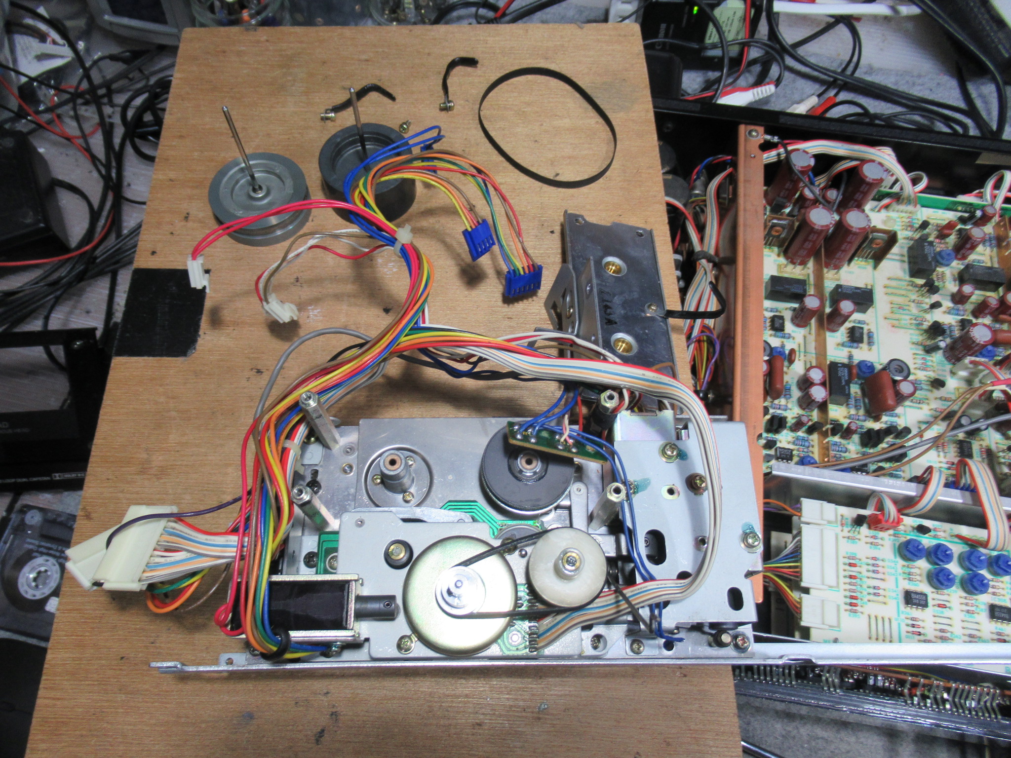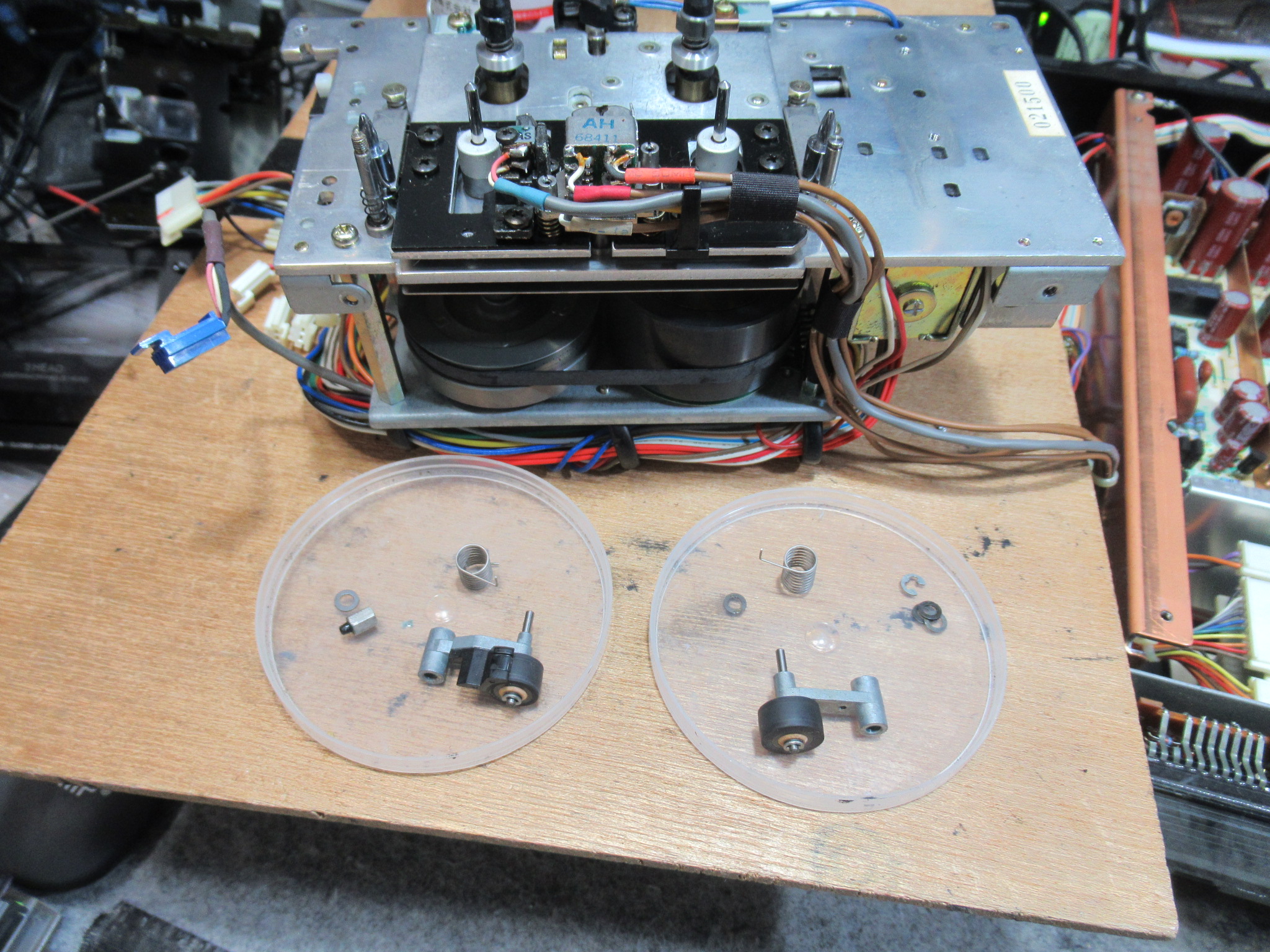 操作ボタンに反応はありますが、モーターが空回りしている感じです。また、キャプスタンが回転していません。