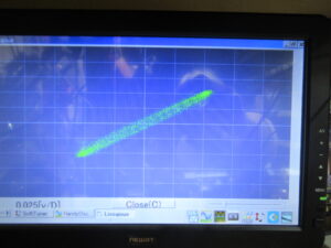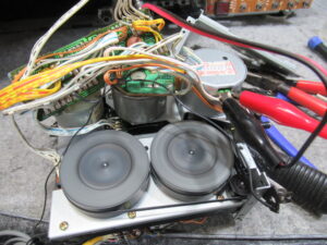 フライホイールとベルトを取り付け、モーターに電圧を加えて動作状況を確認します。異音は解消されました。
