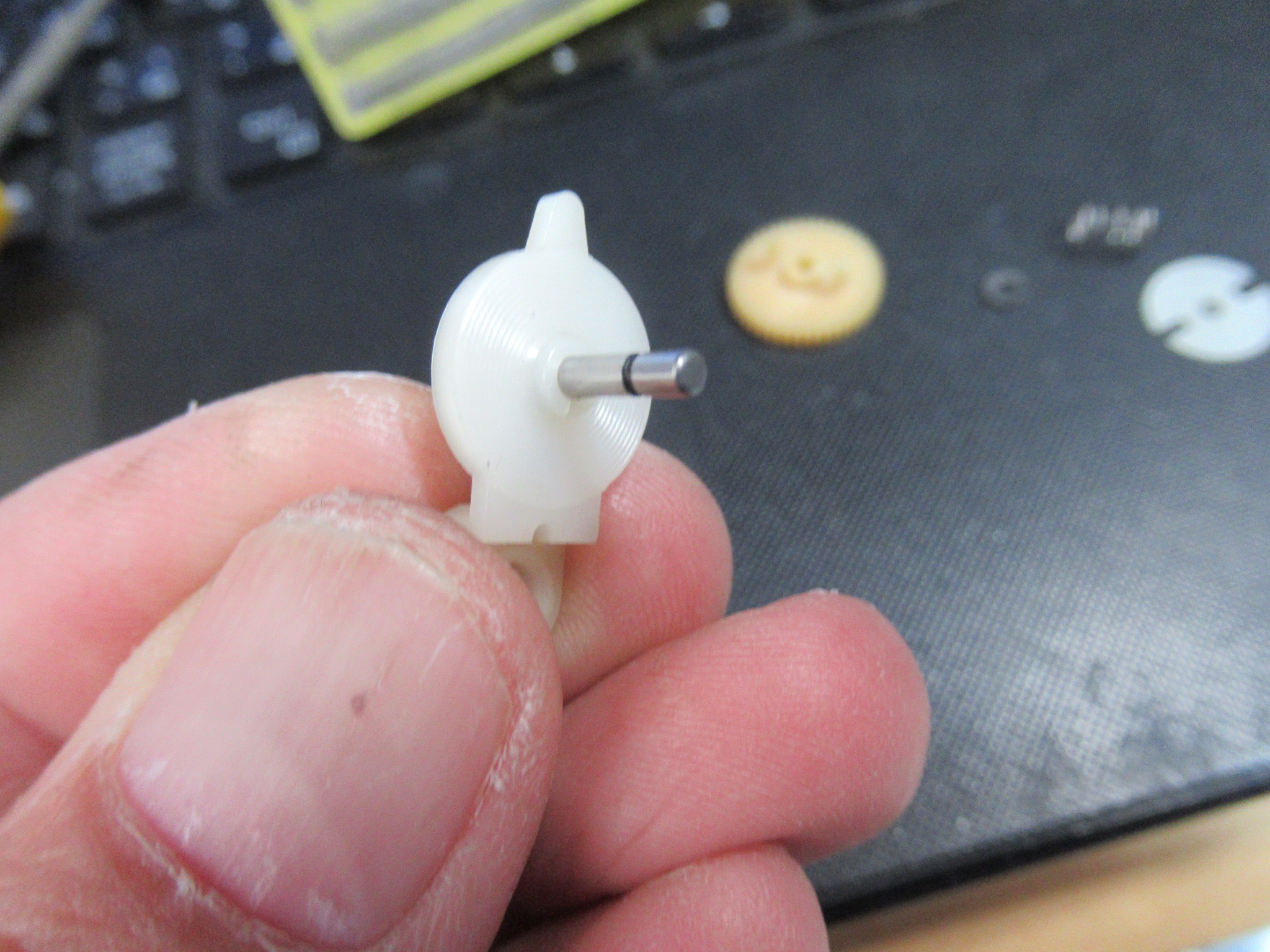 アイドラーを取り出して、抜け出しトラブルの起きやすいシャフトの差し込み部を接着固定します。