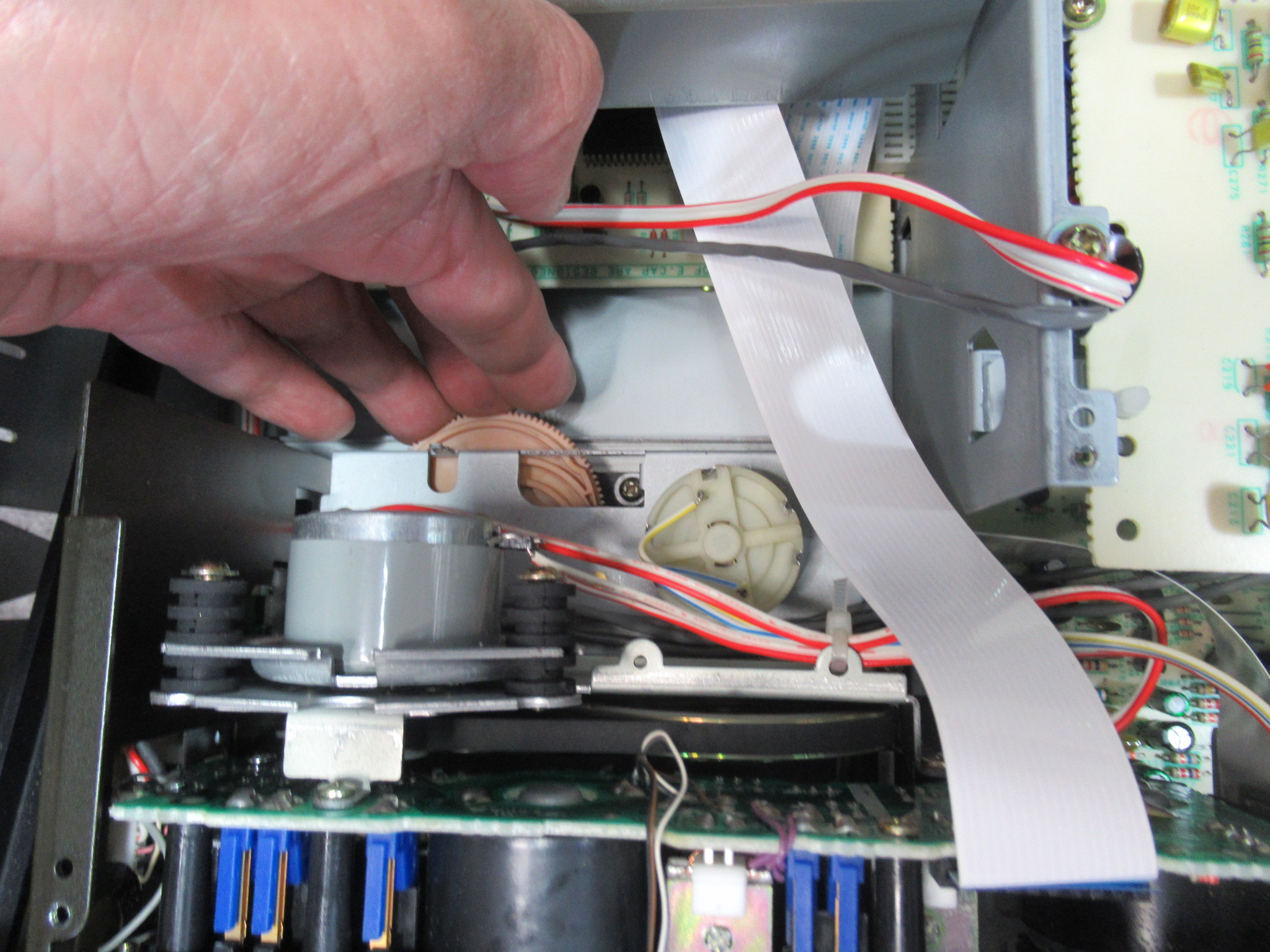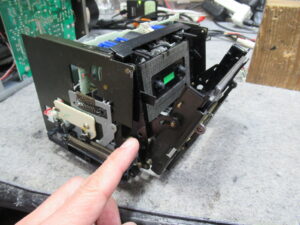 ひと月ほど前からトレイ開閉ができなくなったということです。この機種では定番の故障ですので、いつもどおりAMTSシステムのベルト劣化が原因かと思いましたが、今回は違いました。