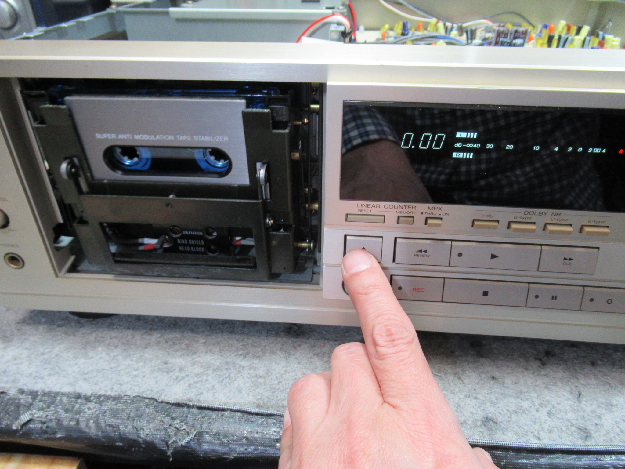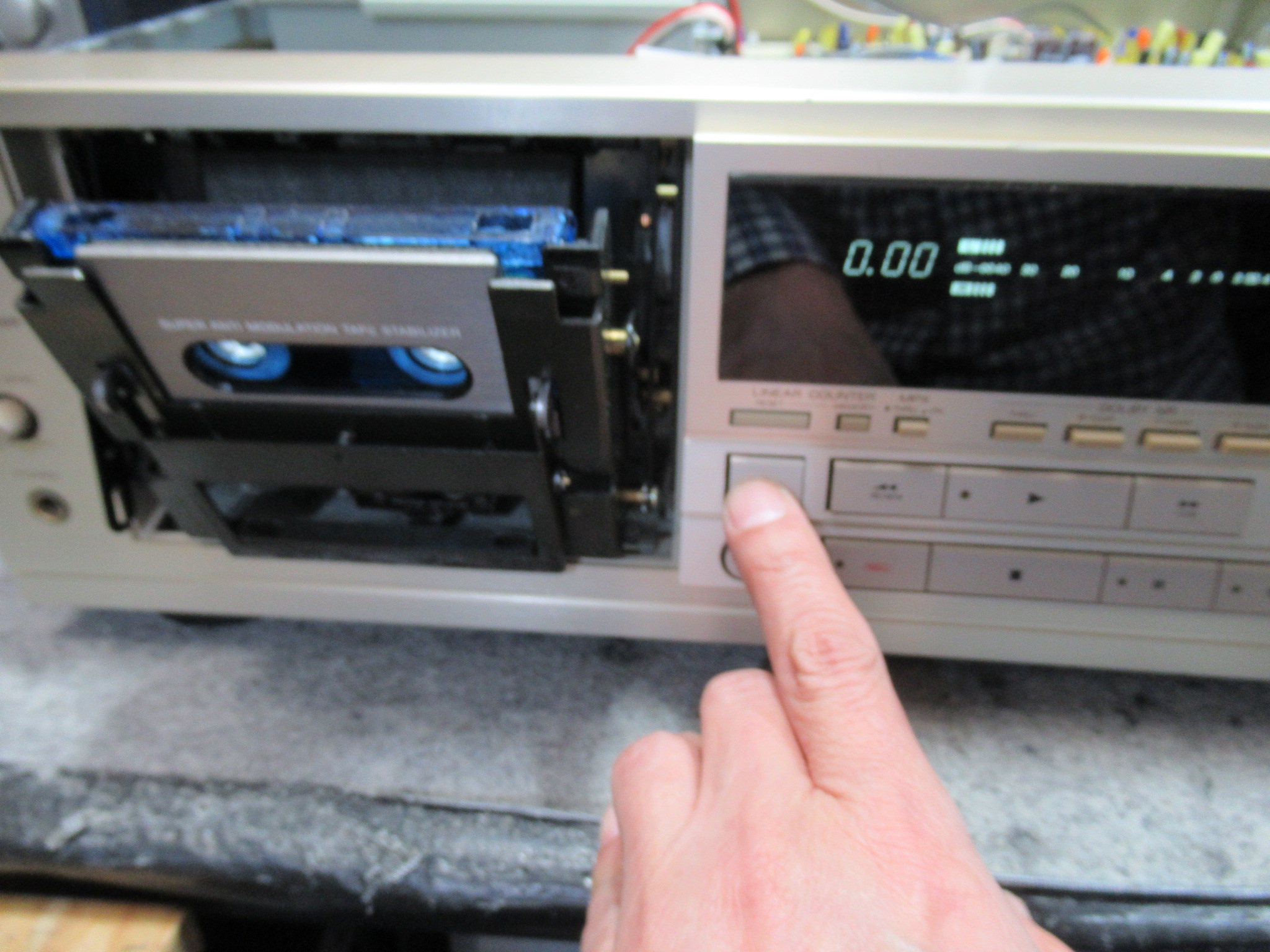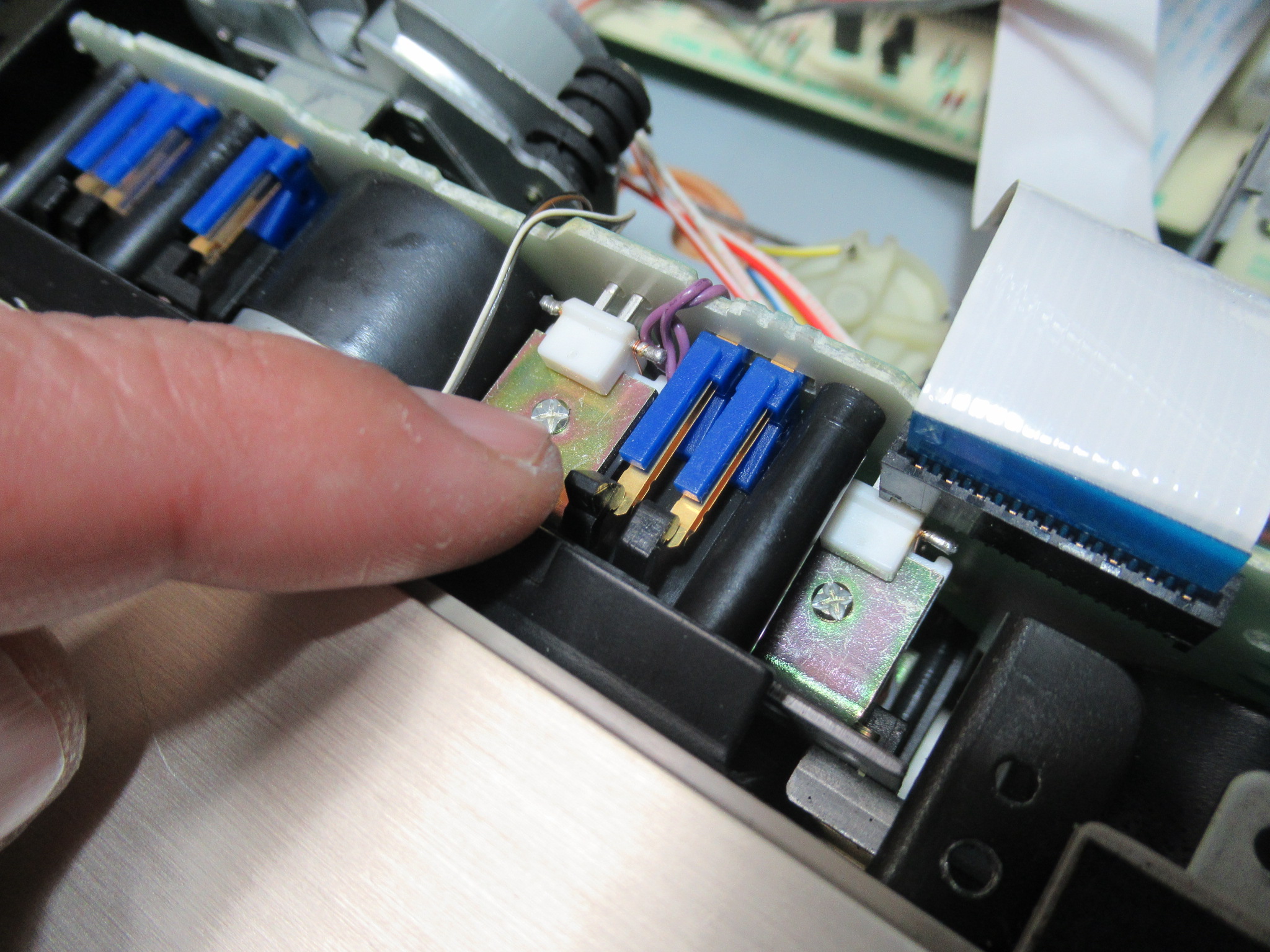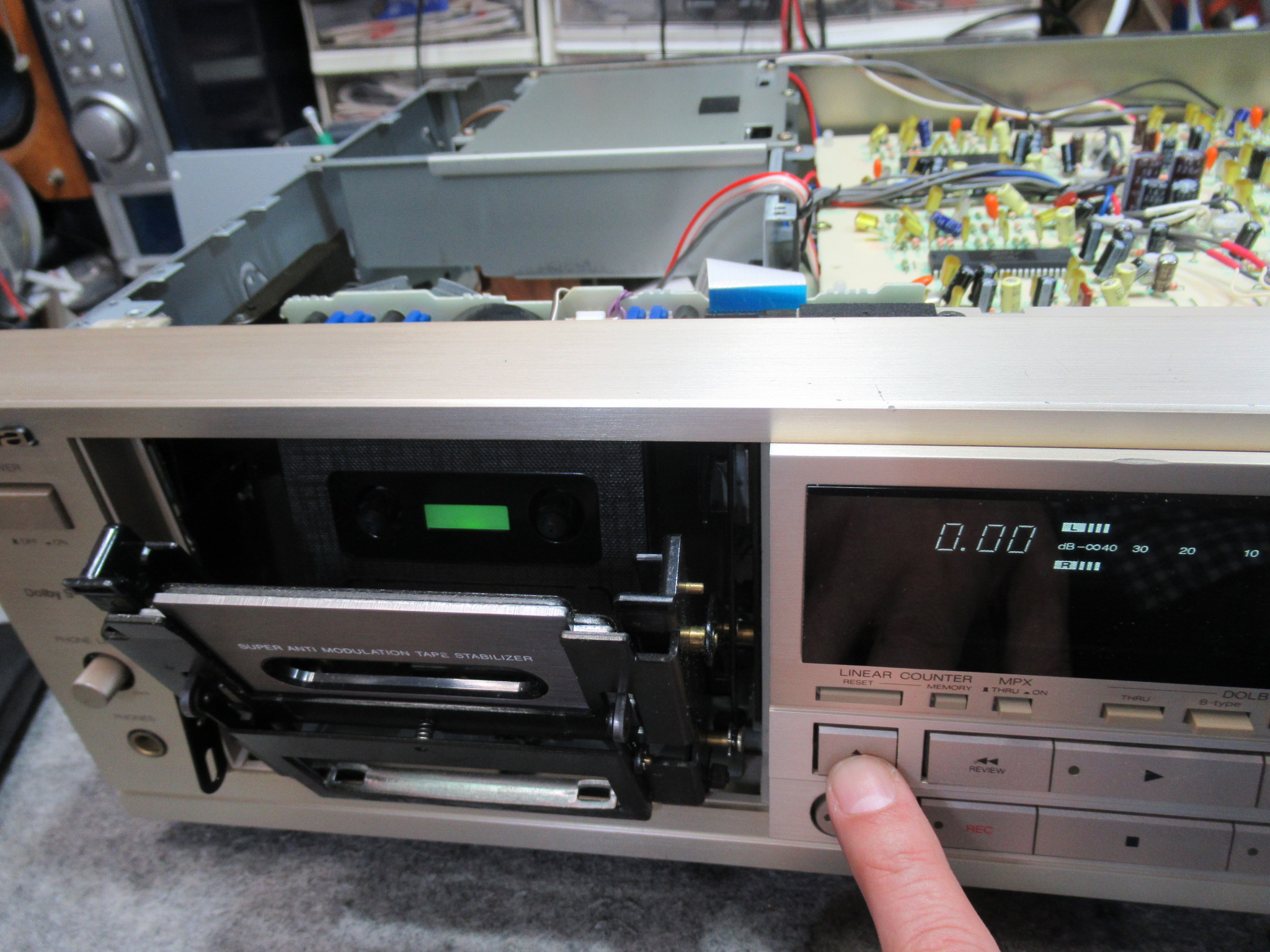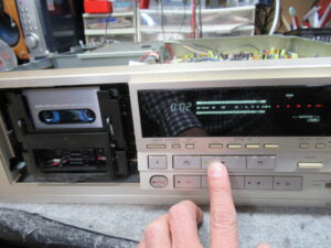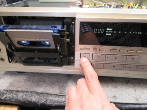 メカの状態を観察していると、最後のひと押しが弱く、カセットを検知するスイッチがONにならないことがわかりました。