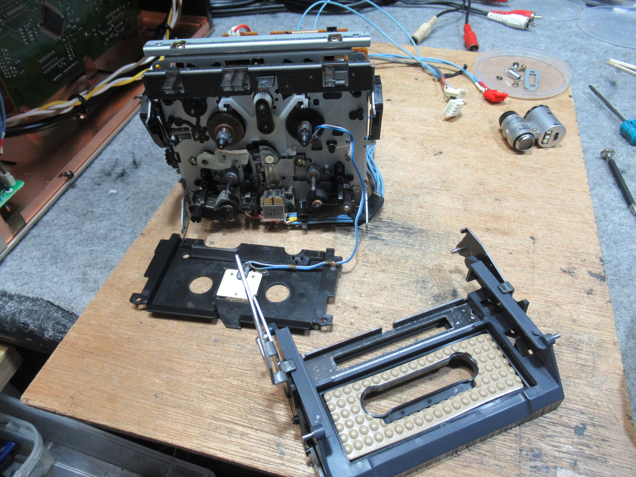 再生も可能ですが、ピンチローラーがかなり痛んでいますので、走行が不安定になっています。