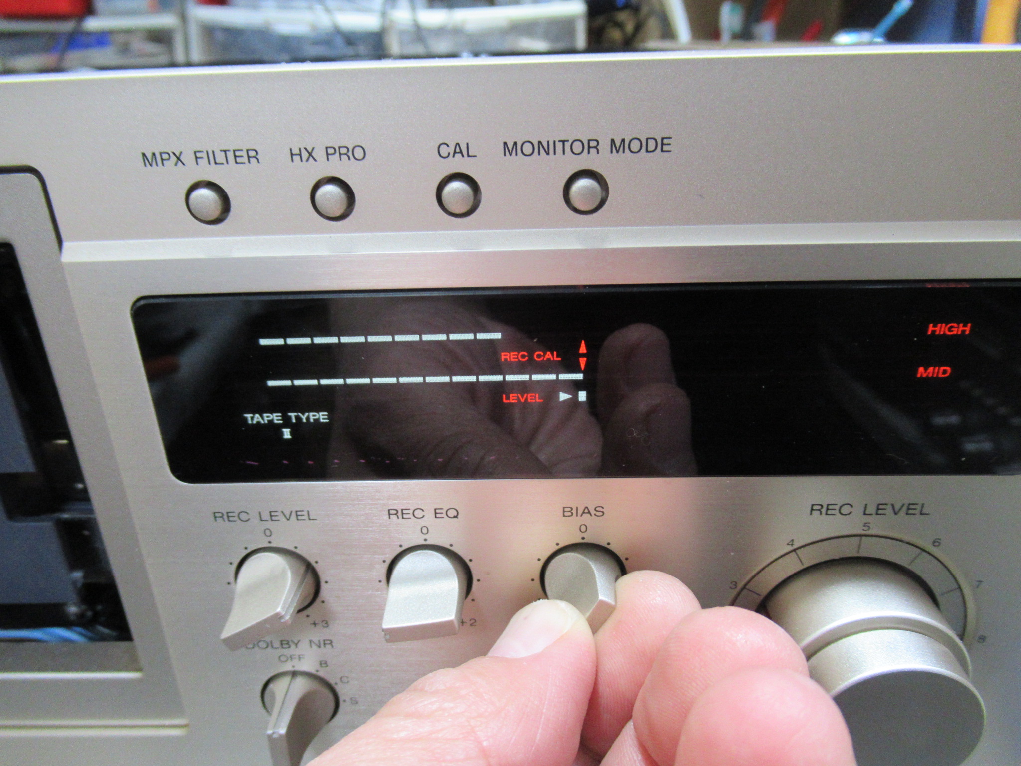 キャリブレーション後のバランスを調整します。左写真はノーマルポジションですが、ヘッドの性能低下によりクロムやメタルでは調整範囲を超えてしまいますが、これは対処できません。