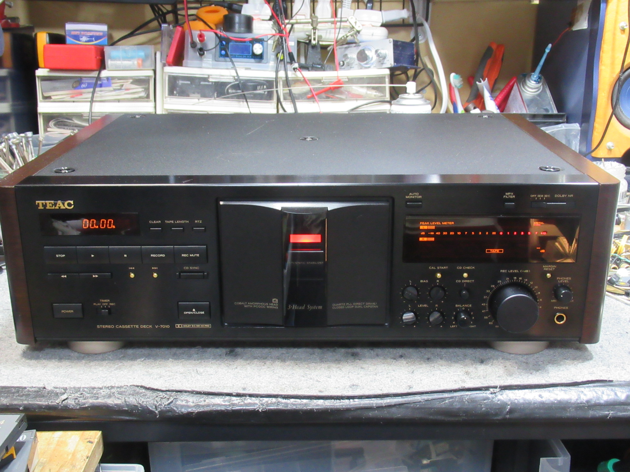 TEAC製3ヘッドデュアルキャプスタンカセットデッキ、V-7010です。