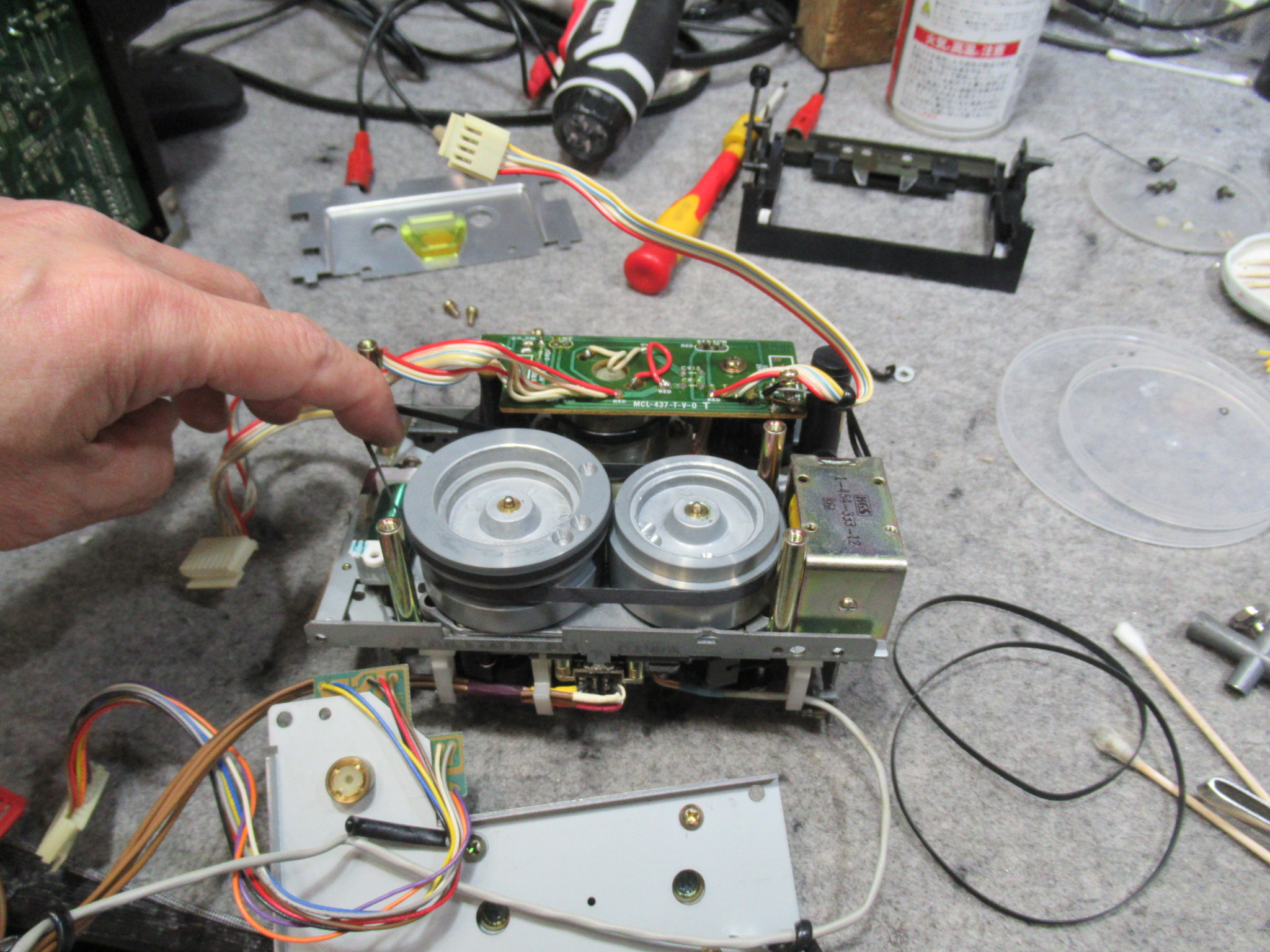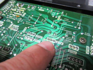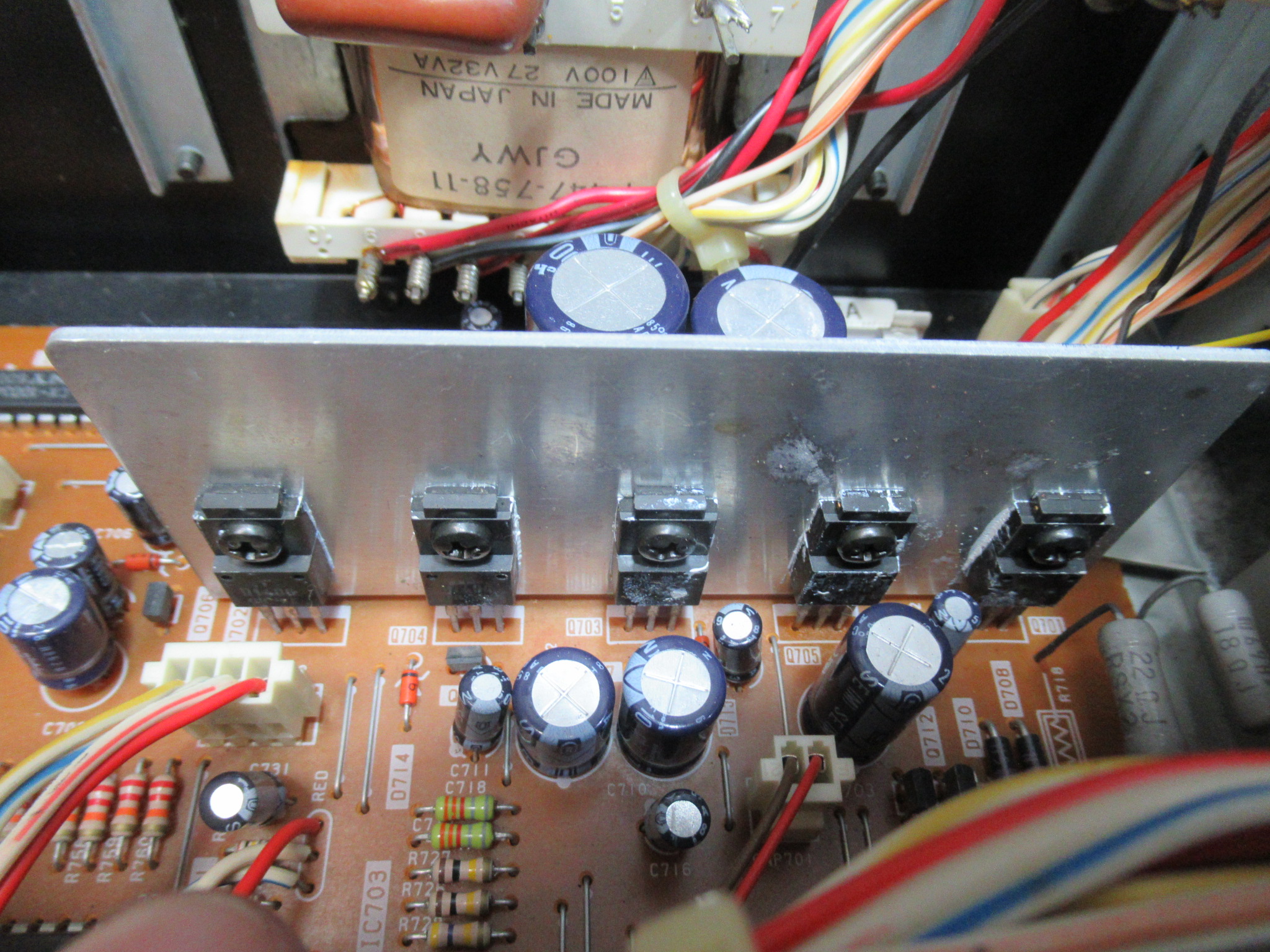 この機種のウイークポイントをメンテナンスします。電源部のトランジスタやオーディオ回路のアースラインには半田割れが生じやすいという傾向があります。
