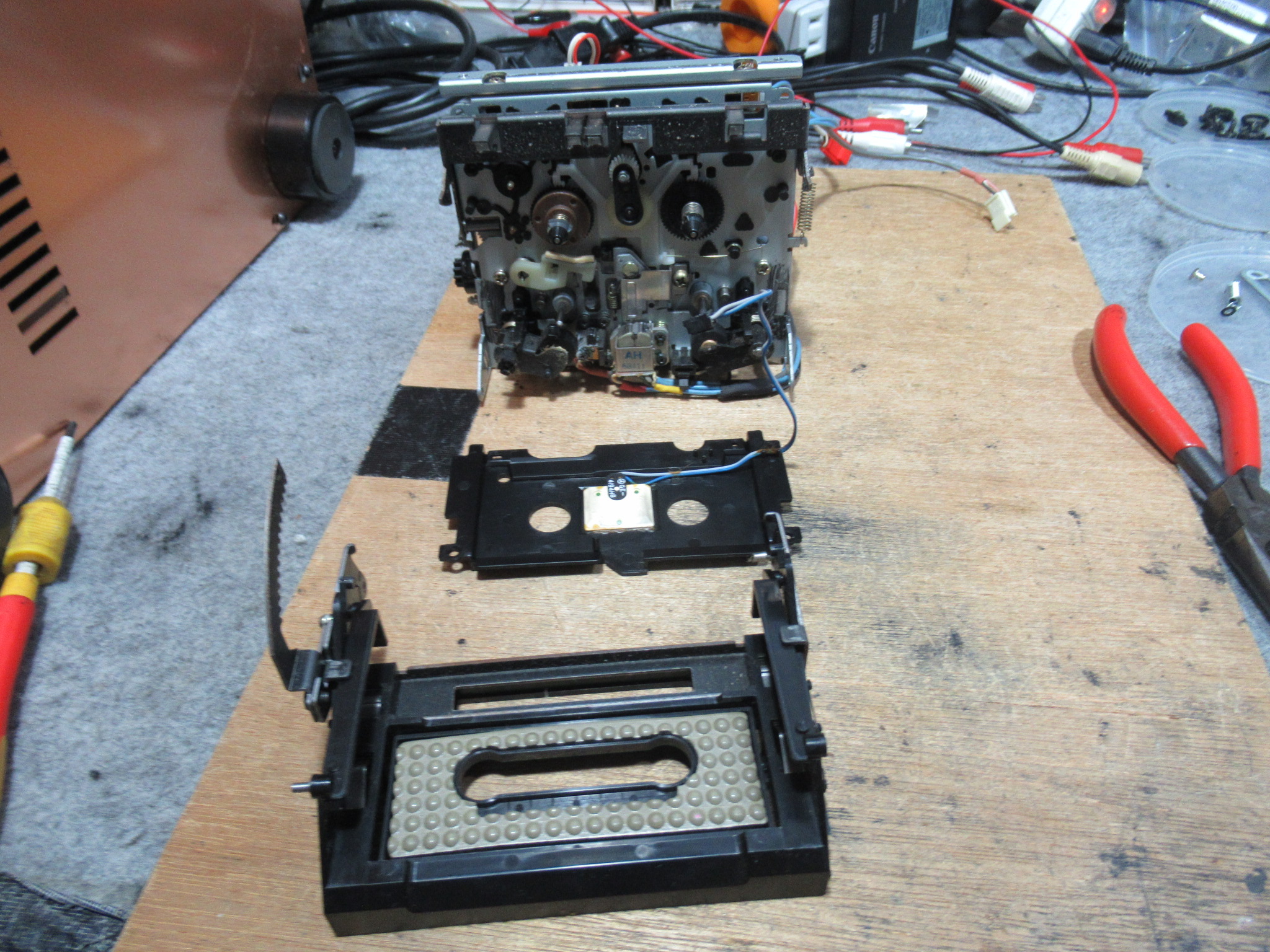 SONY製3ヘッドデュアルキャプスタンカセットデッキ、TC-K555ESLの修理依頼をいただきました。 テープを痛めることがあるということです。今回は全体のメンテナンスも併せて行います。 ひとまず動作 …
