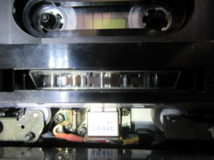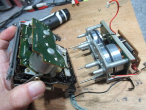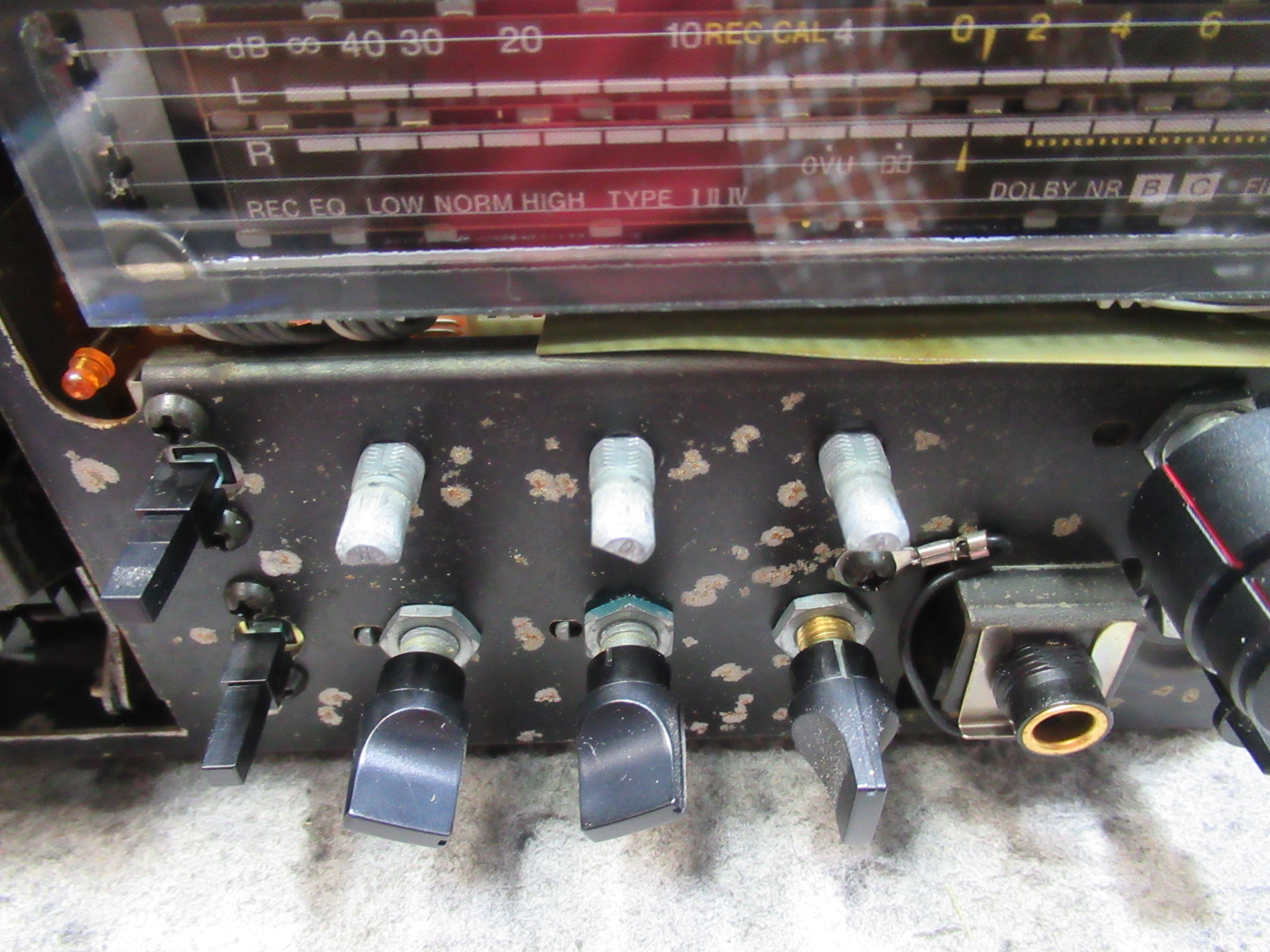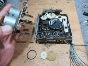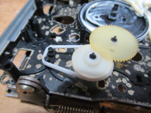 今日はジャンク機として入手したTC-K555ESGの修理を行いました。 メカを取り出して、いつもどおりピンチローラーを外す前に位置をノギスで測定しました。 すると、標準的な値より1mm以上フロント側に …