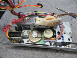 中央に見えるのがトレイが開くときの衝撃を緩和するオイルダンパーですが、部品入手が叶わないため処置はできません。