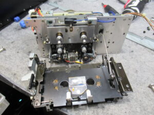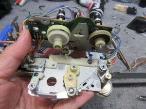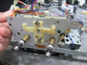 ユニットを分解し、固着気味の箇所にグリスアップするとともに、早送り巻き戻し用のアイドラーゴムを交換します。
