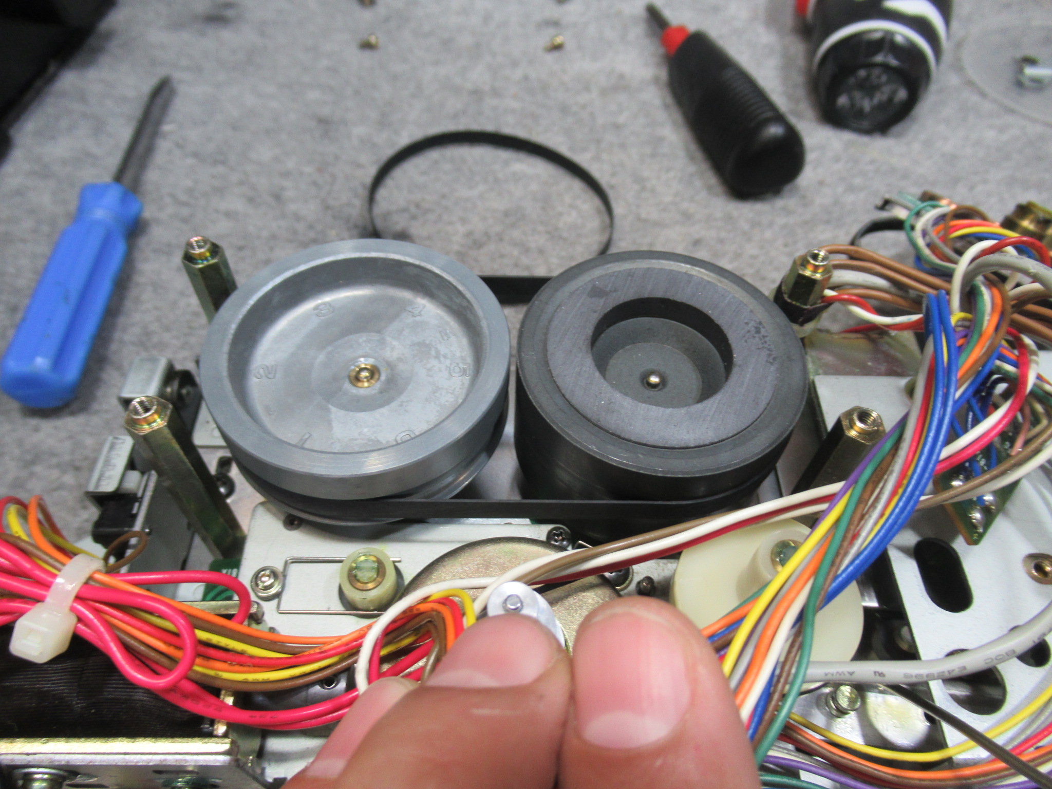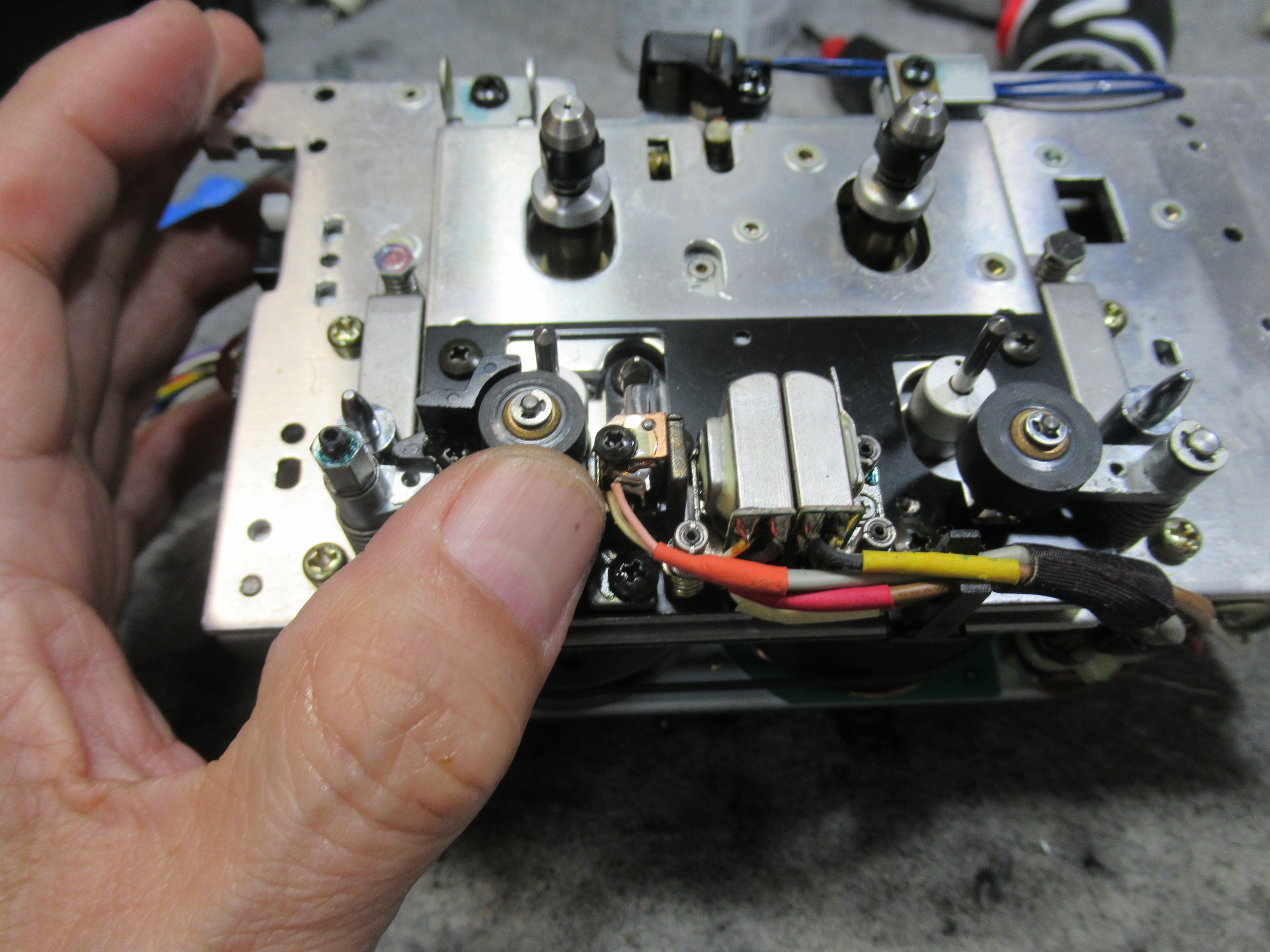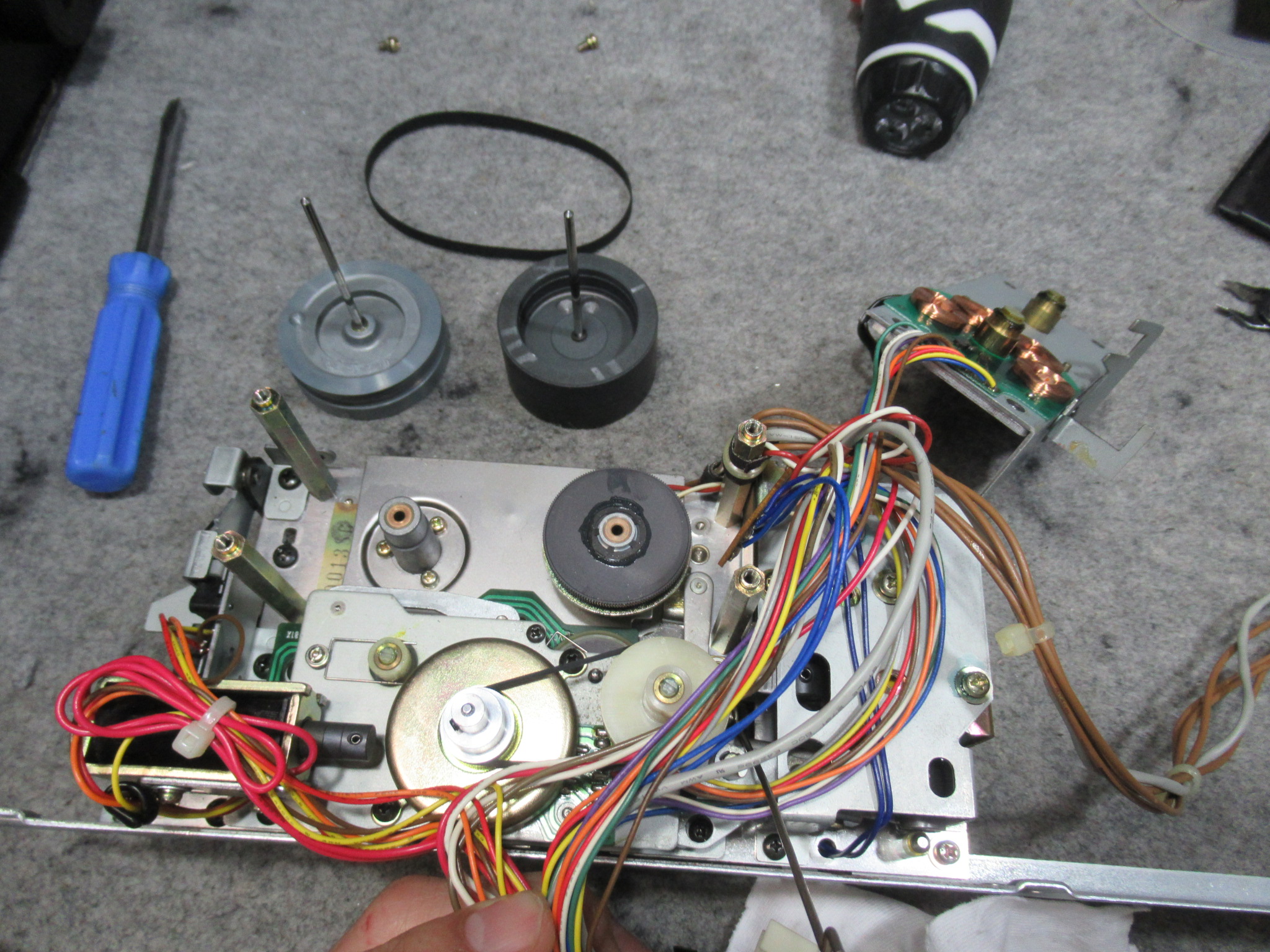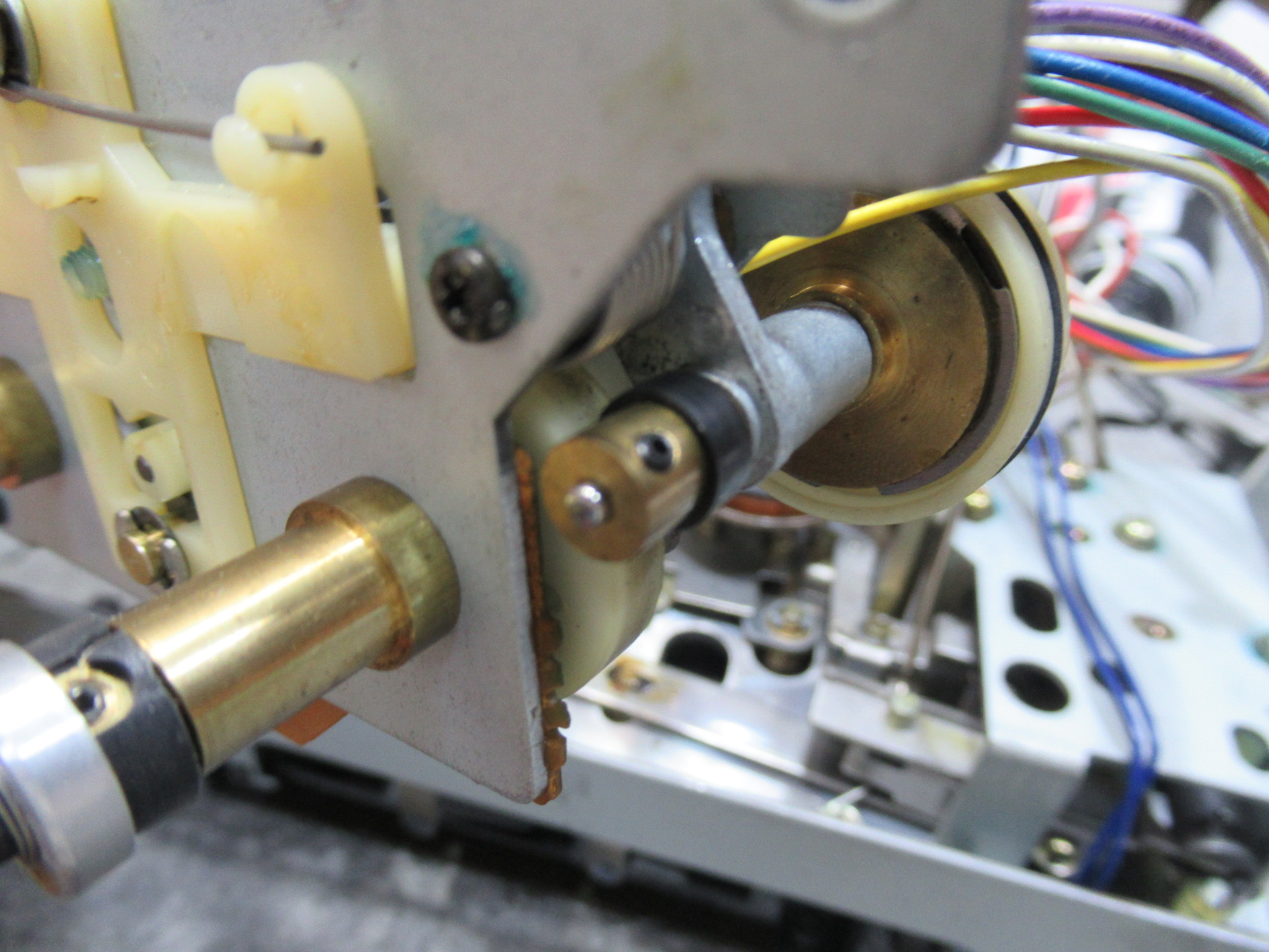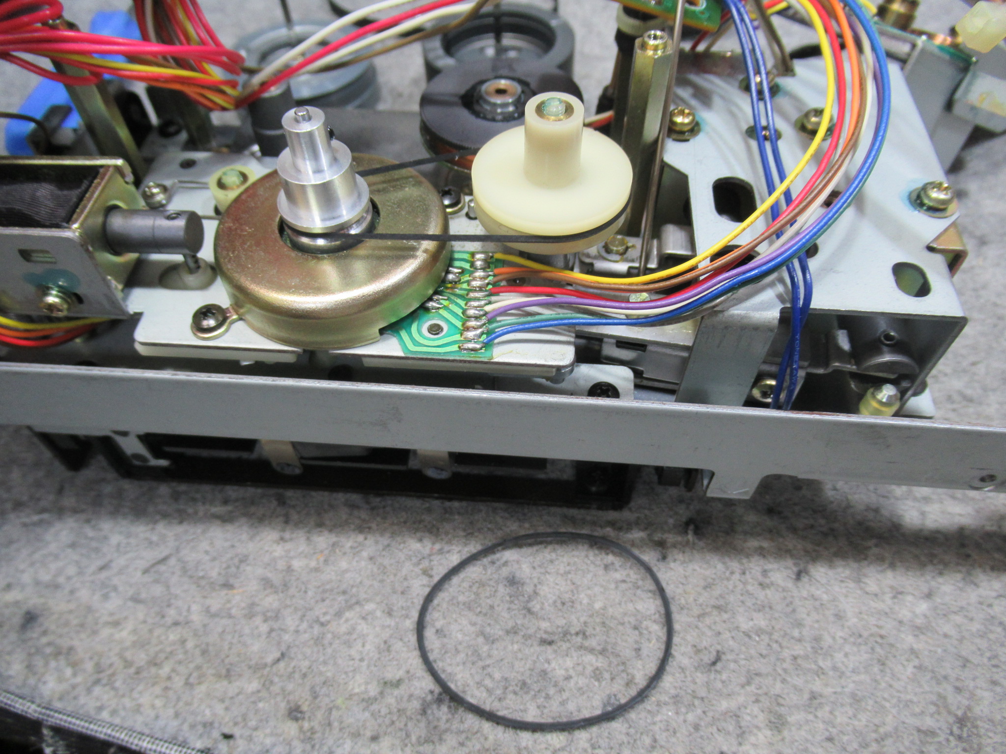 ユニットを分解し、固着気味の箇所にグリスアップするとともに、早送り巻き戻し用のアイドラーゴムを交換します。