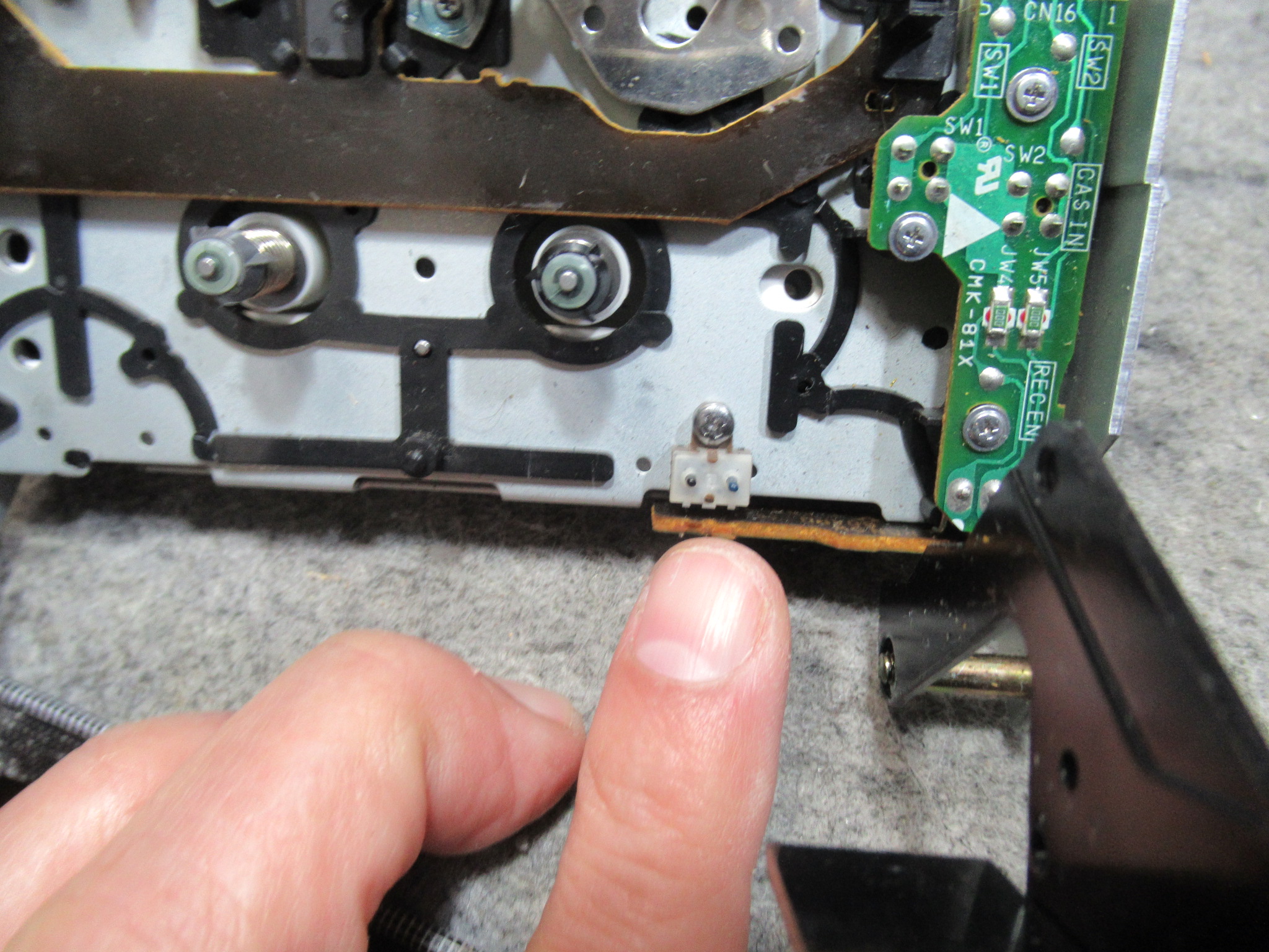 カートリッジ検出スイッチに接点復活剤を処置します。