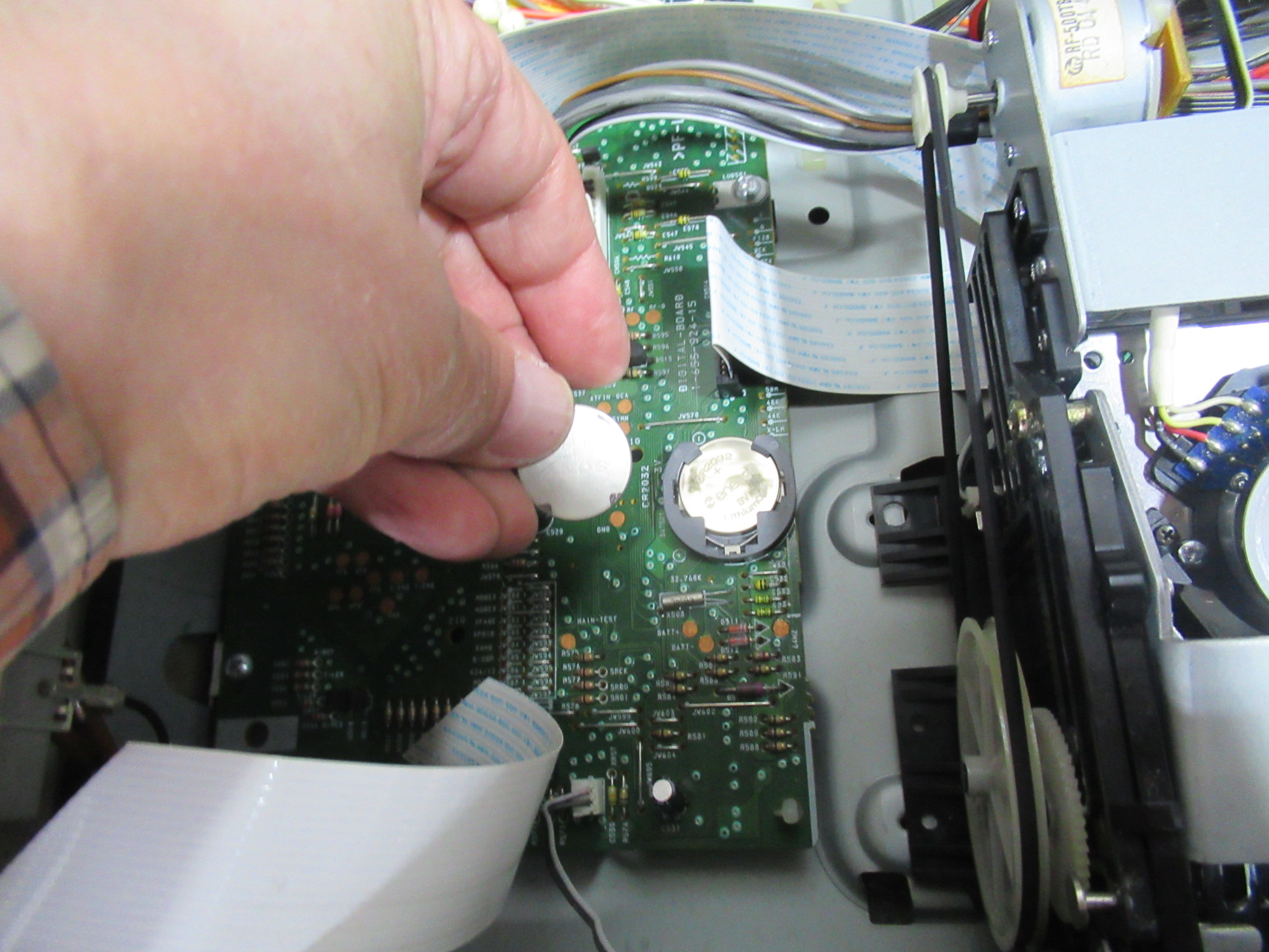 この機種と姉妹機のA8は、ピンチローラーの脱落トラブルが多く発生します。この機体も留め具が脱落して簡単に外れてしまいました。