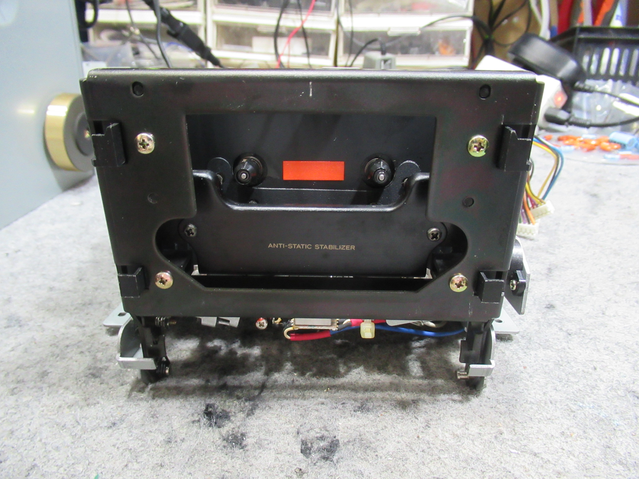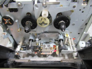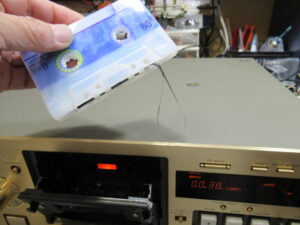 再生を開始するとカタカタ音が鳴ってテープ走行できないということです。当店の動作テストでは正常に動作しましたので、当初は何かの間違いかと思い、その旨ご依頼者にお知らせしましたが、とりあえず点検整備を実施するということになりました。