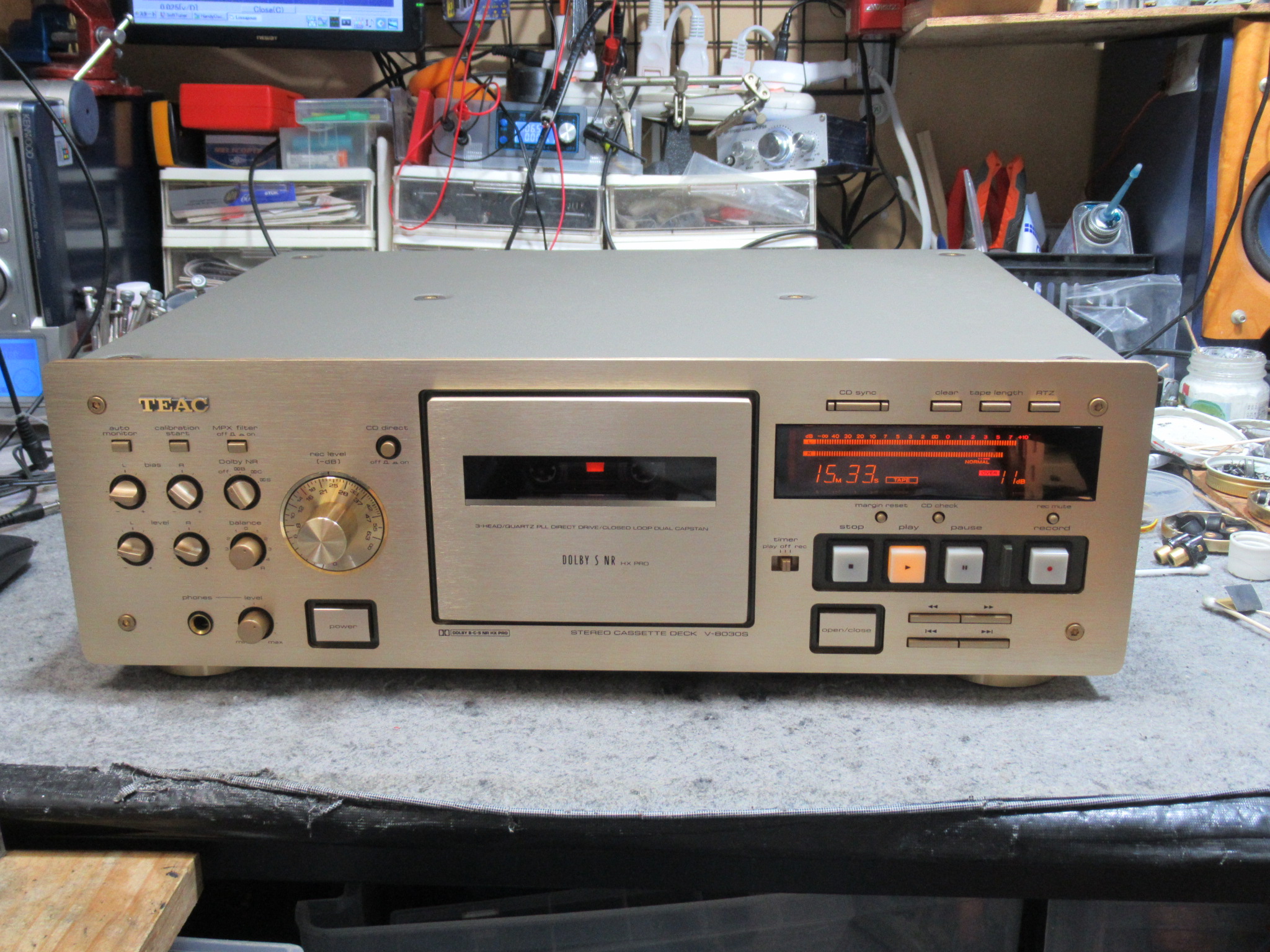 TEAC製3ヘッドデュアルキャプスタンカセットデッキ、V-8030Sの修理依頼をいただきました。