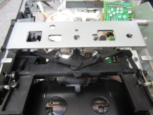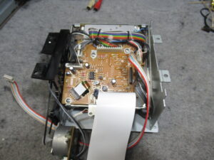 メカを降ろして、まずは、トレイ開閉の不具合の原因のひとつ、劣化したローディングベルトを交換します。