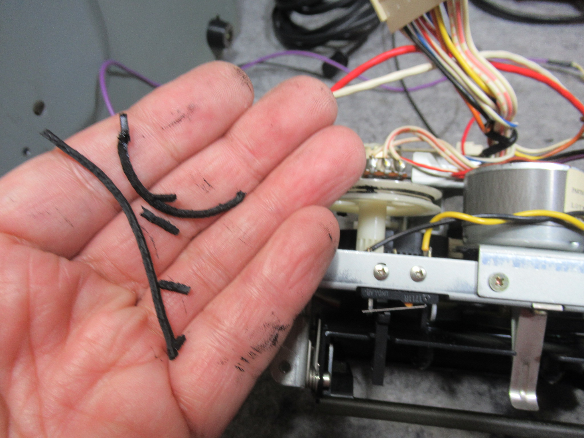 キャプスタンベルト、モードベルトのいずれも加水分解で溶け切れ、その後の相当の時間の経過により現状は乾いた状態になっています。